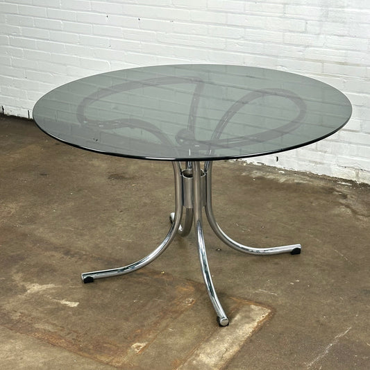 Franse stalen vintage bijzettafel voor Kappa door Francois Monnet met rookglas