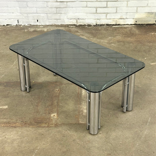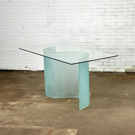 Italiaanse glazen eettafel met een s-vormig mat onderstel