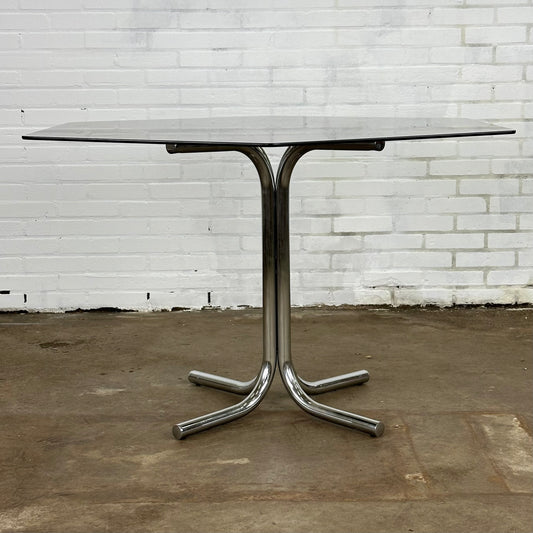 Vintage eettafel met rookglas en buisframe onderstel