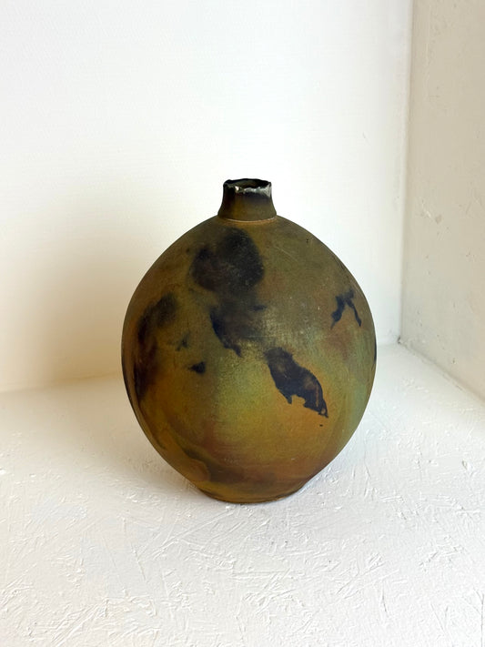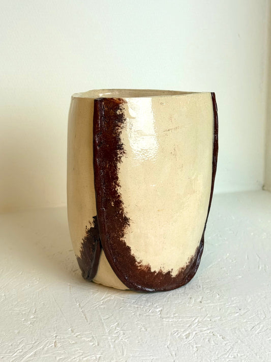 Vintage handgemaakt crèmekleurige & bruine vaas