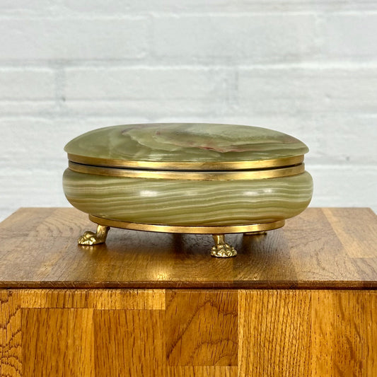 Vintage Italiaans onyx marmer juwelen doosje met leeuwenpootjes