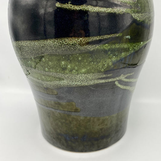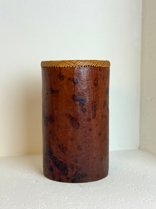Vintage Wabi-Sabi Ronde langwerpige vaas met rotan