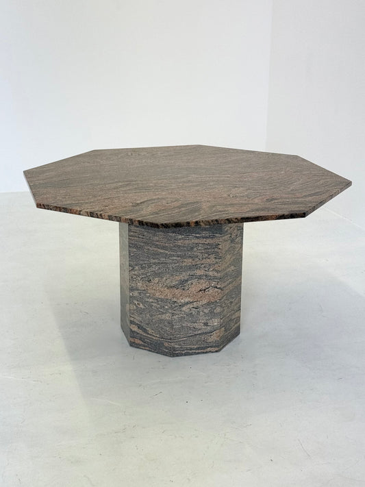 Vintage achthoekige eettafel in graniet / natuursteen
