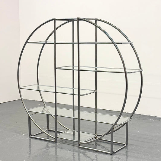 Cirkelvormige Bauhaus stelling met buisframe en glazen planken