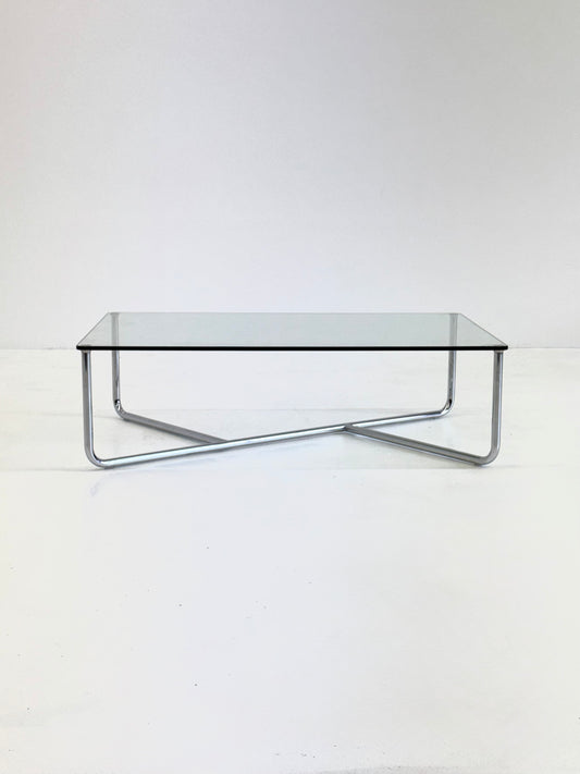 UitverkochtGlazen Gispen salontafel met buisframe onderstel