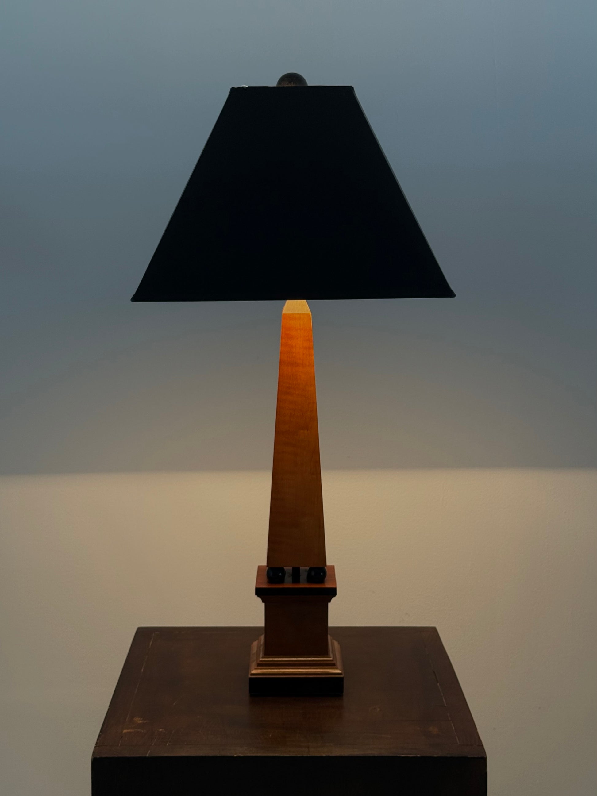 Set hoge art deco tafellampen in obeliskvorm met ebbenhouten