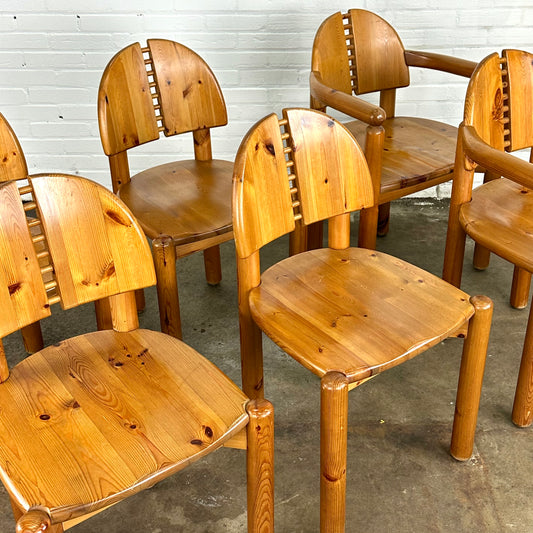 Set van 6 Rainer Daumiller grenen eetkamerstoel met gedetailleerde rugleuning
