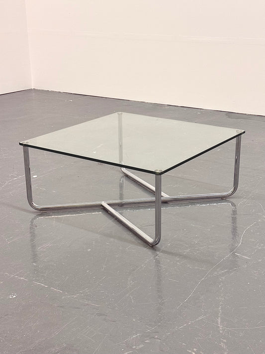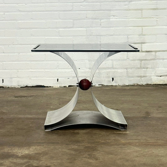 Vintage bijzettafel voor Kappa door Francois Monnet met rookglas en rvs