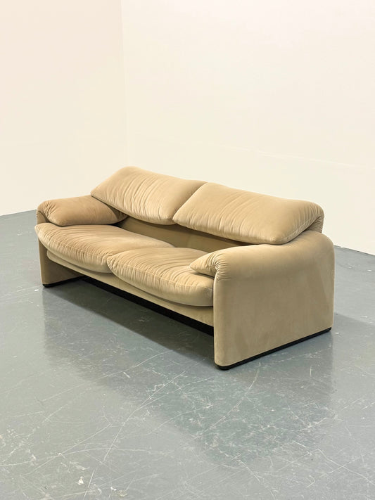 Beige Velvet Cassina Maralunga 2-Zits Bank door Vico Magistretti