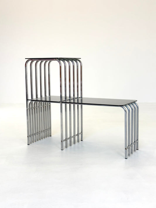 Buisframe Bijzettafel met Rookglazen Blad in Space Age Stijl