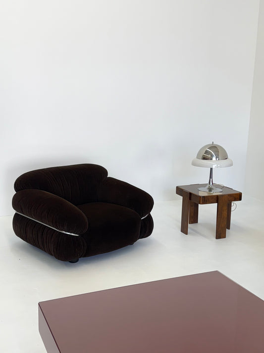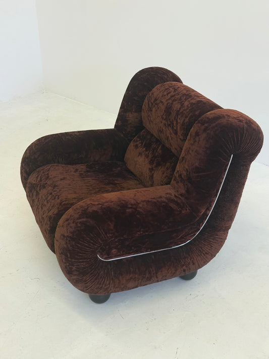Vintage Italiaanse fauteuil in donkerbruin Velours