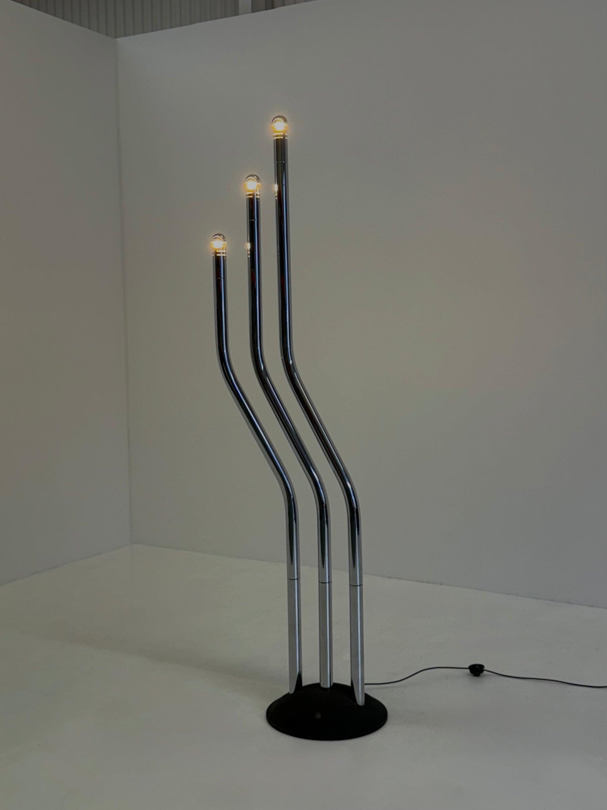 Chromen buisframe design vloerlamp door Goffredo Reggiani