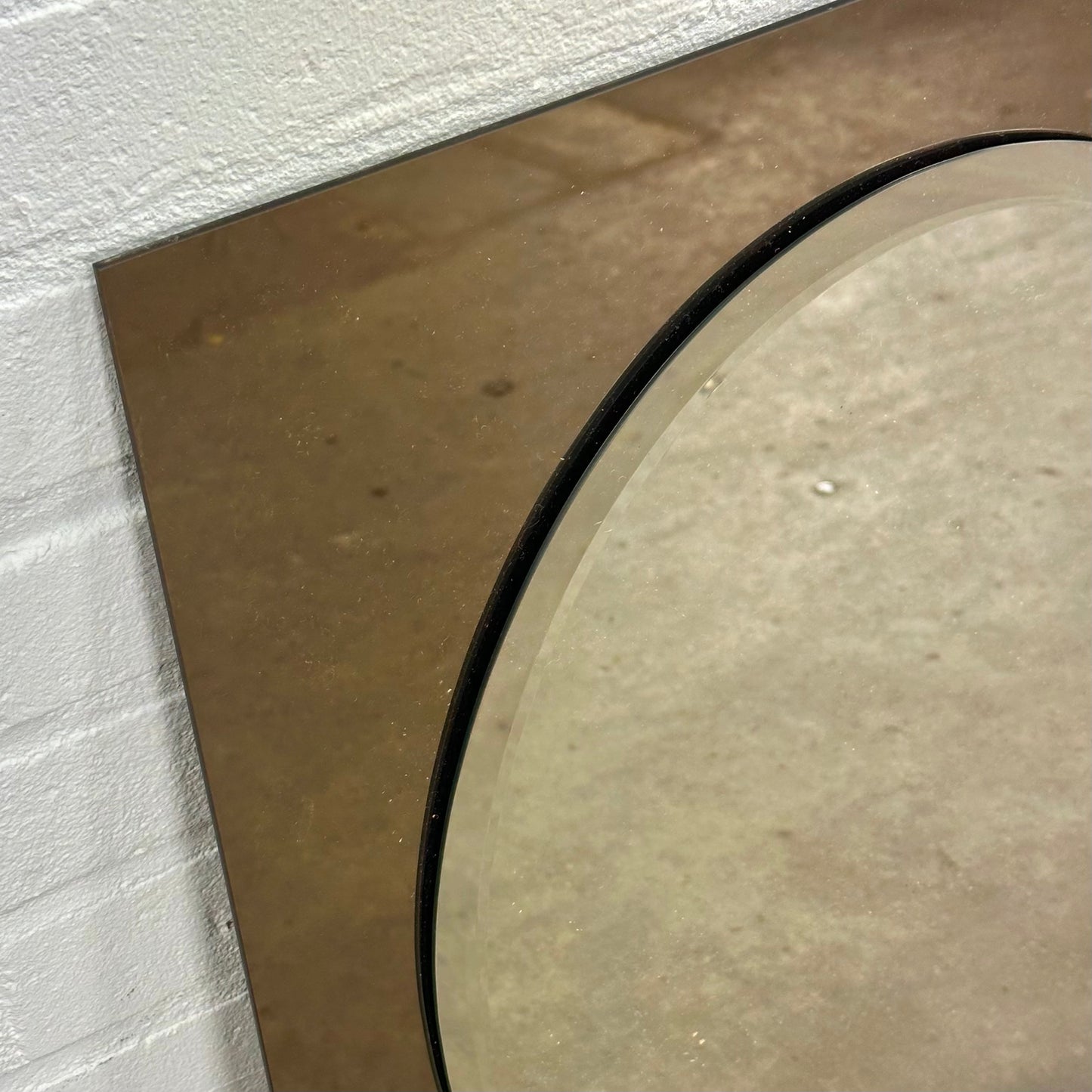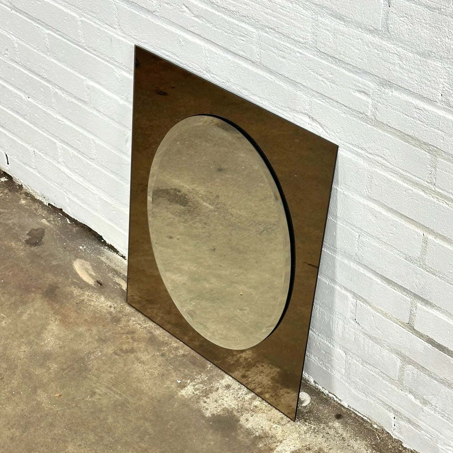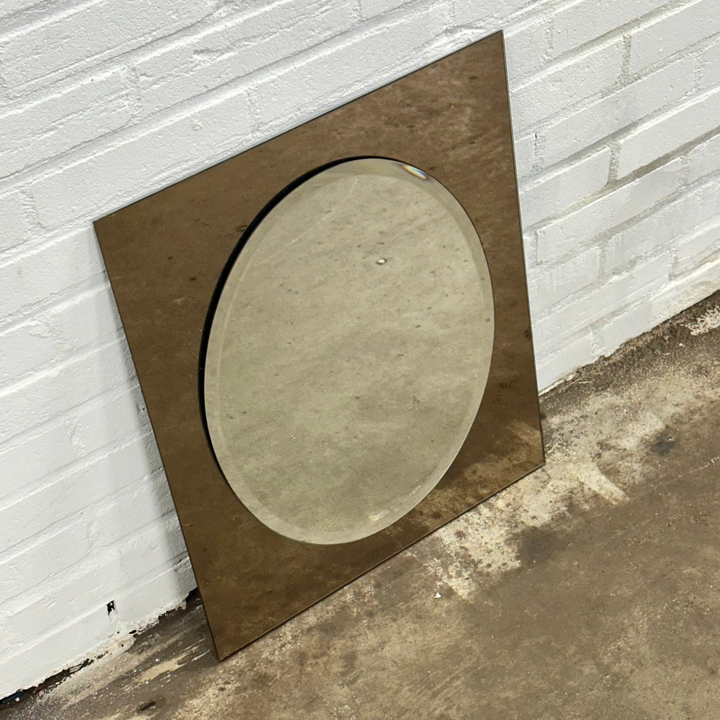 Omschrijving: Rechthoekige vintage spiegel vierkant met opgeplakt ronde spiegel.