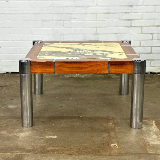 Vintage salontafel met marmer in combinatie met hout en chroom