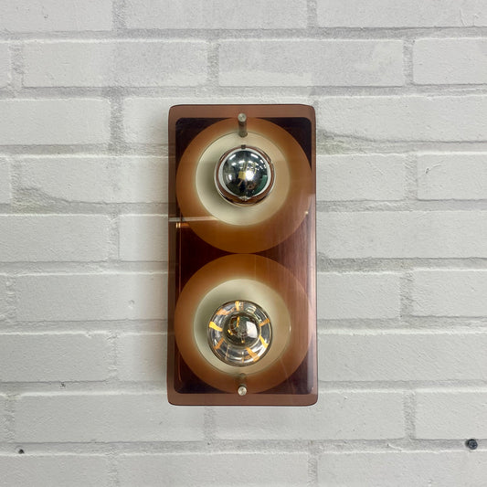 Vintage ronde Space Age salontafel in chroom en rook glas