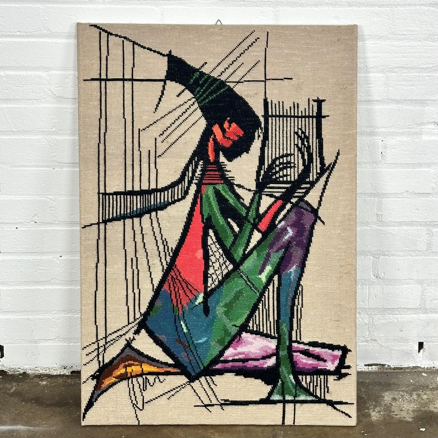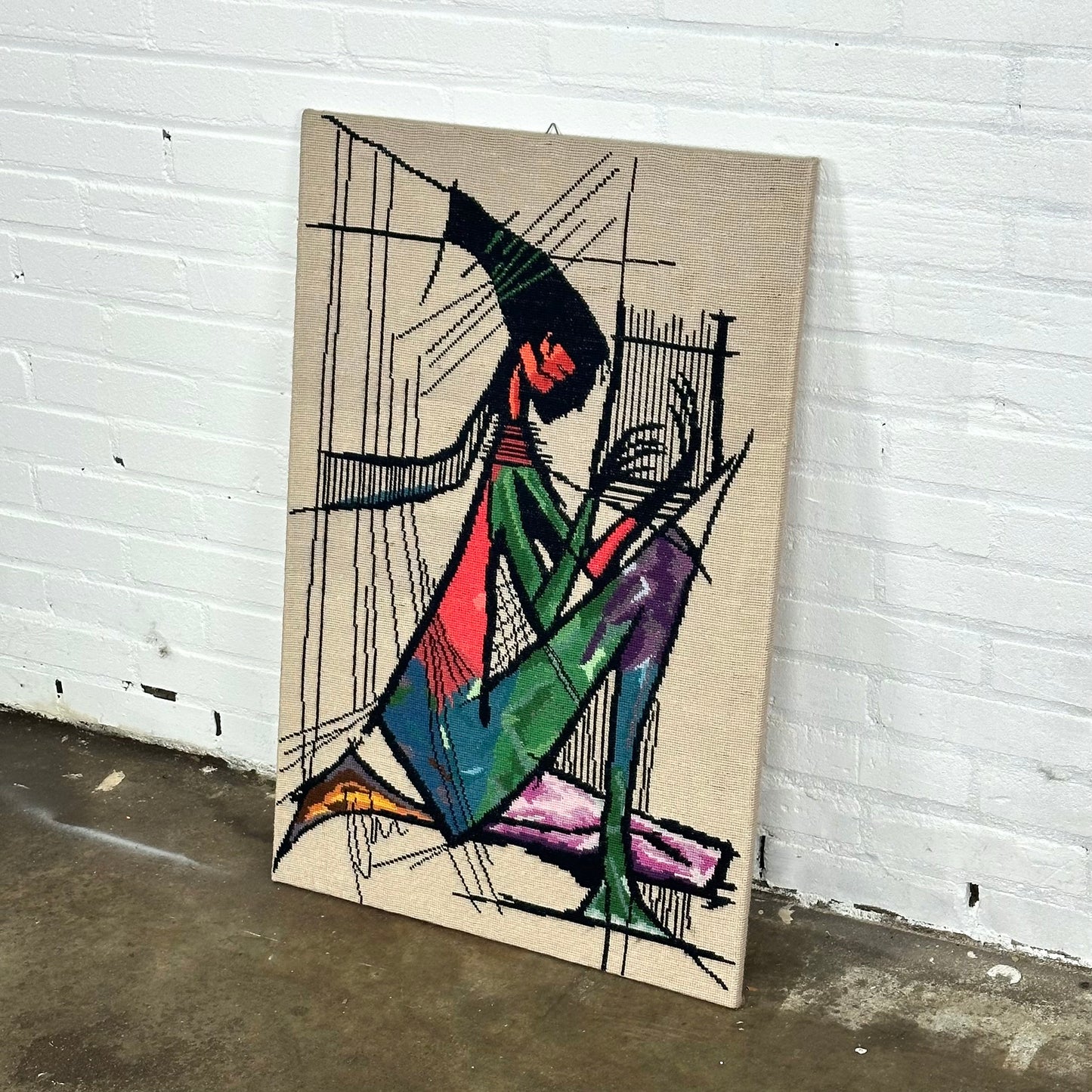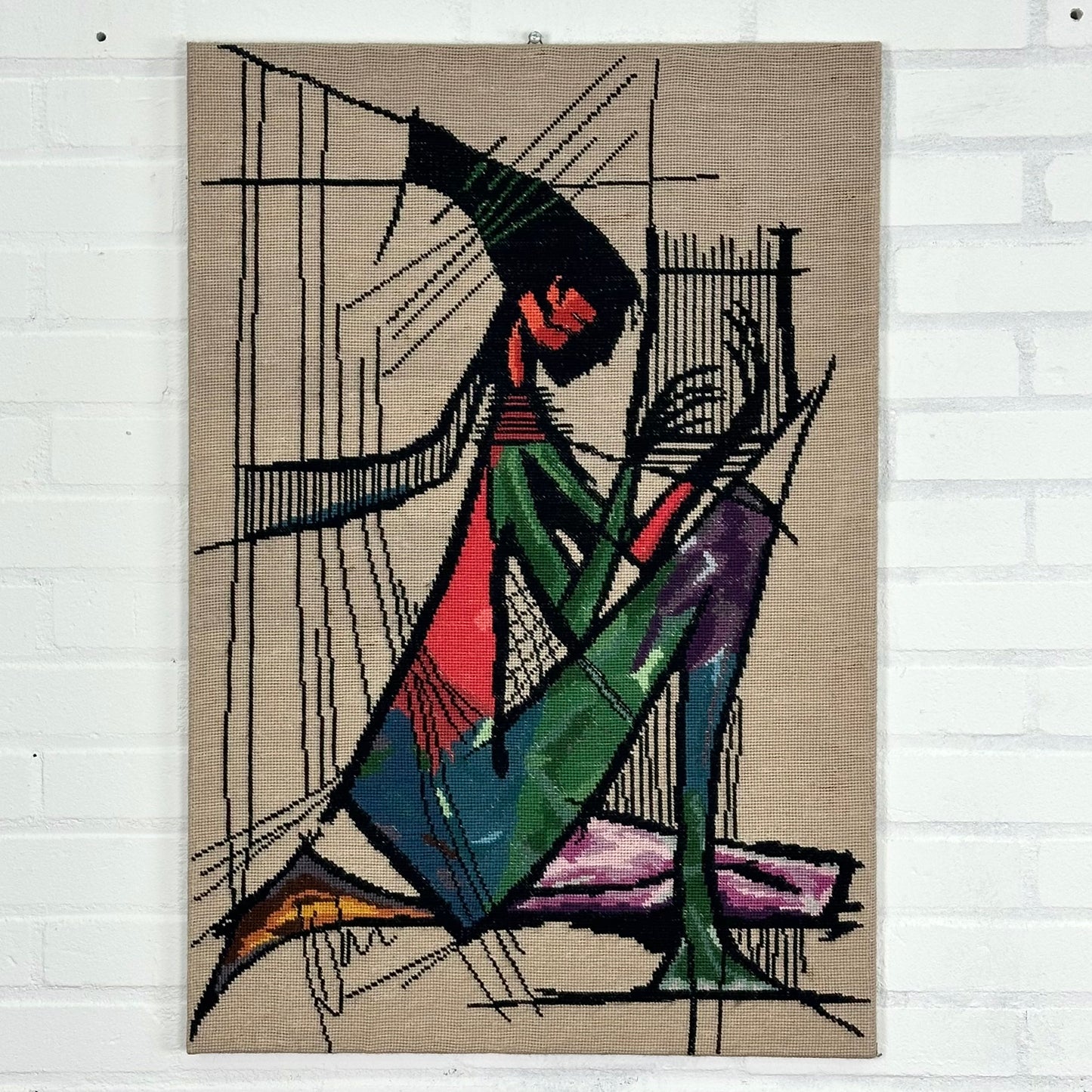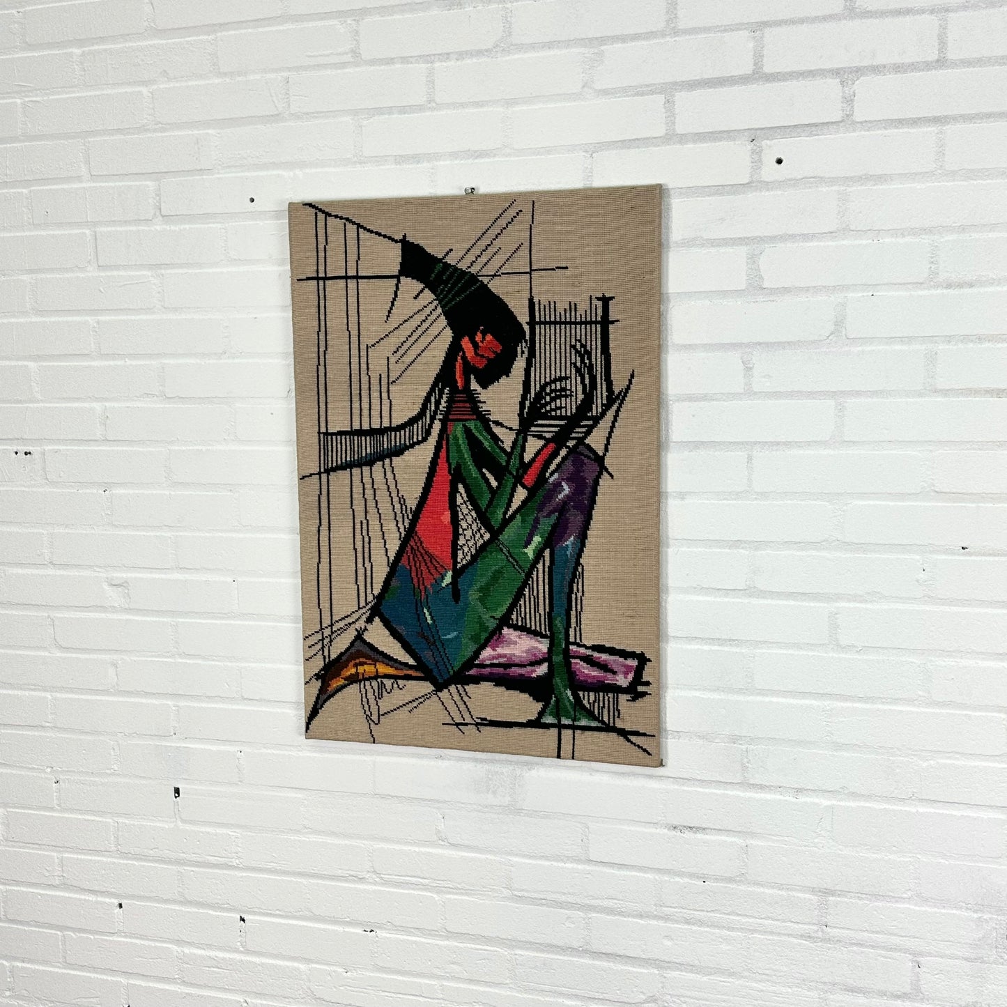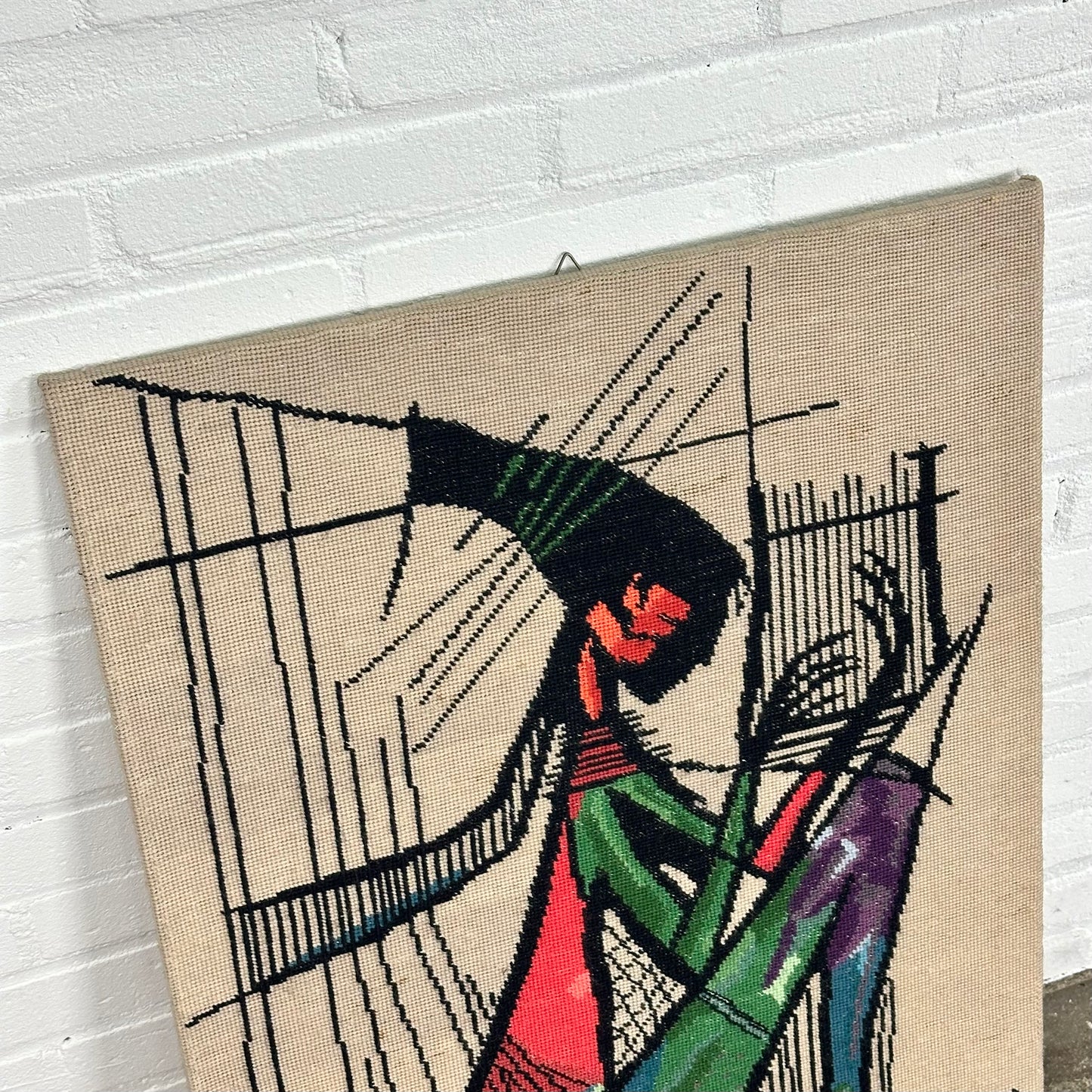Omschrijving: Borduurwerk van de Harpspeelster