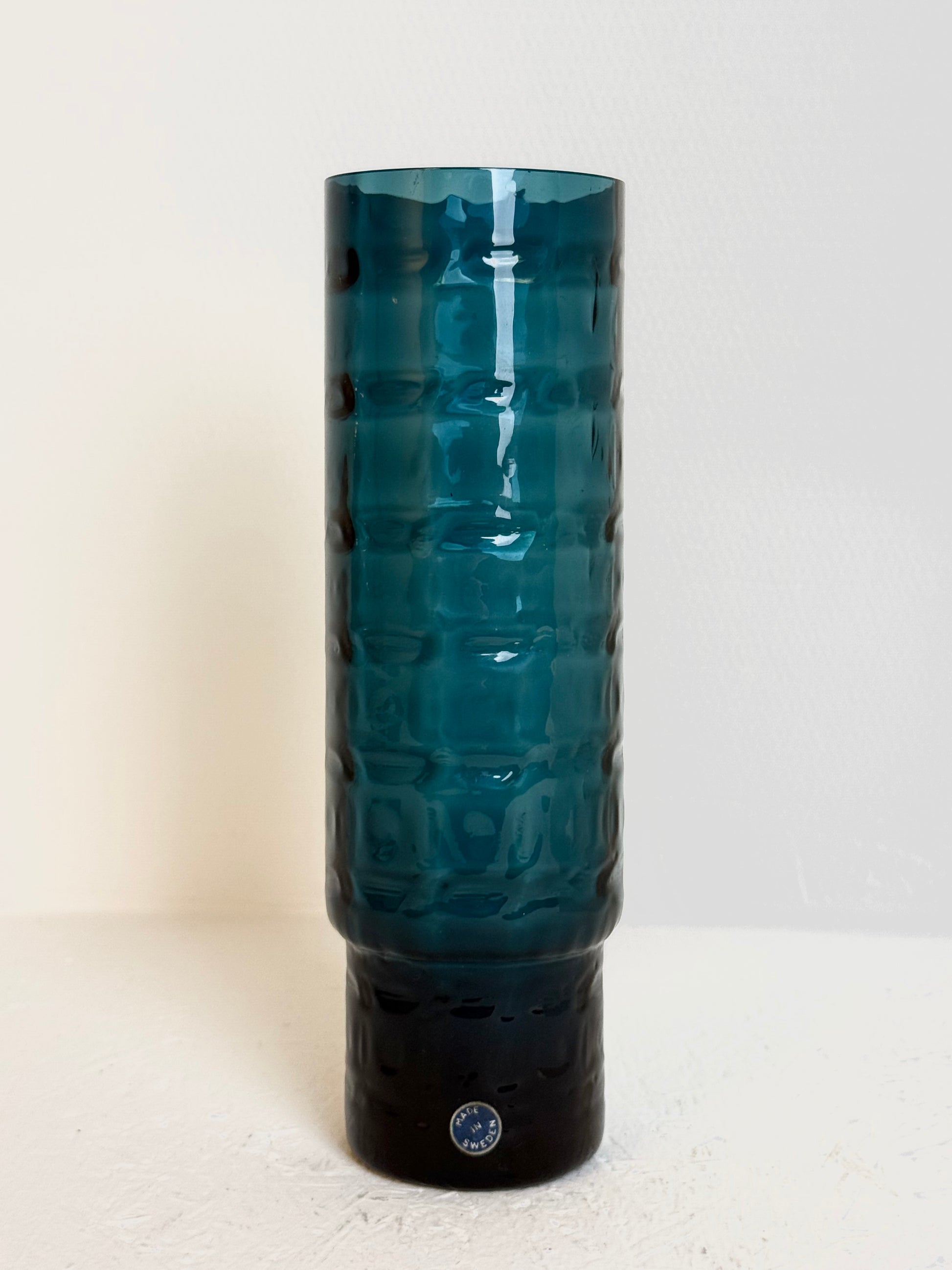Omschrijving: Handgemaakt glazen vaas van Alsterfors uit Zweden.