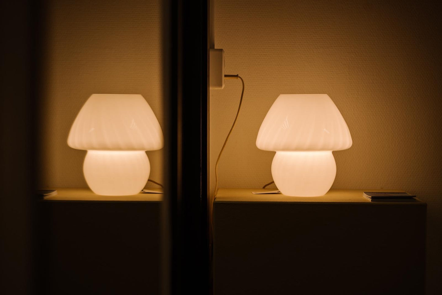 Omschrijving: Vintage paddenstoel lamp van Murano glas ontworpen voor W.S.B. (3151)