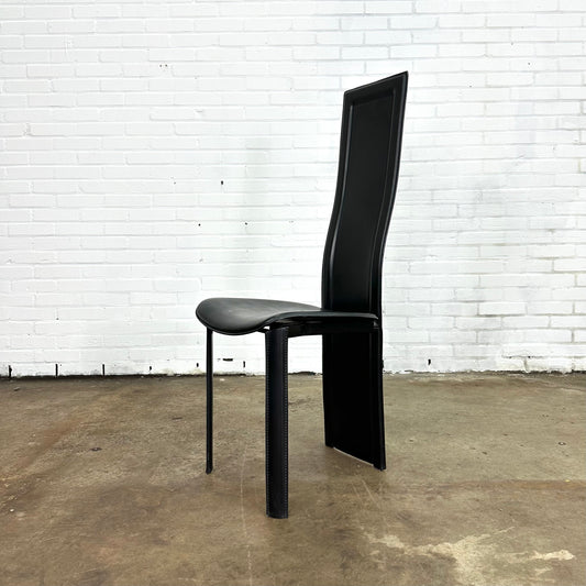 Set of 'Elena B' black leather dining chairs by Quia