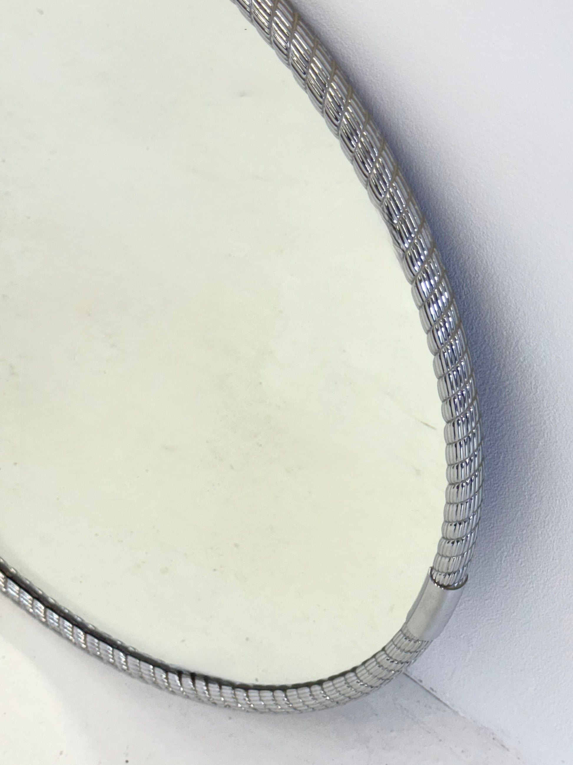 Deze ronde spiegel heeft een strak buisframe met subtiel reliëf en straalt tijdloze eenvoud uit. Het heldere glas geeft een rustige en elegante uitstraling, waardoor de spiegel perfect past in een hal, slaapkamer of woonkamer.