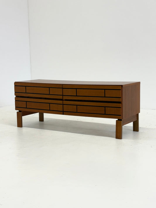 Italiaans laag houten dressoir met grafische zwarte lijnen