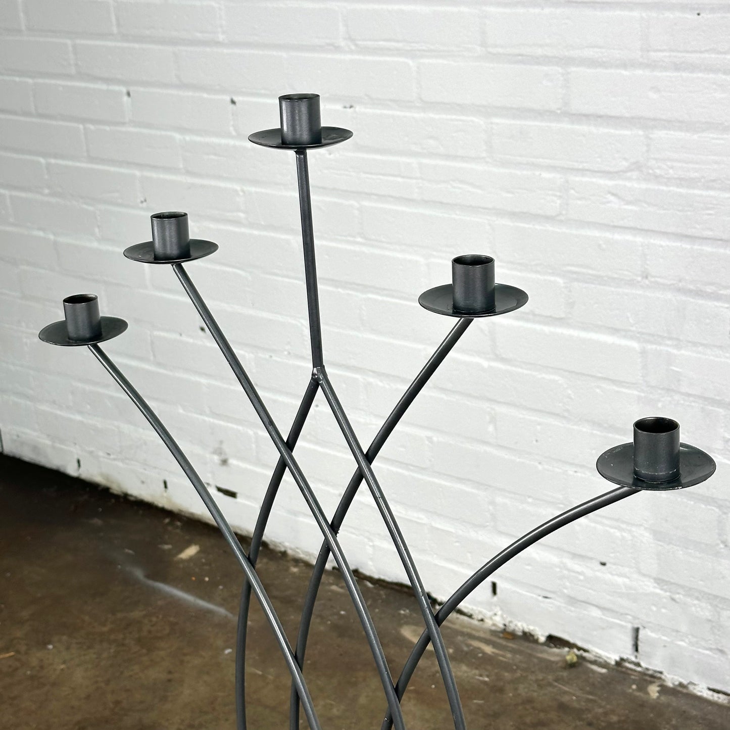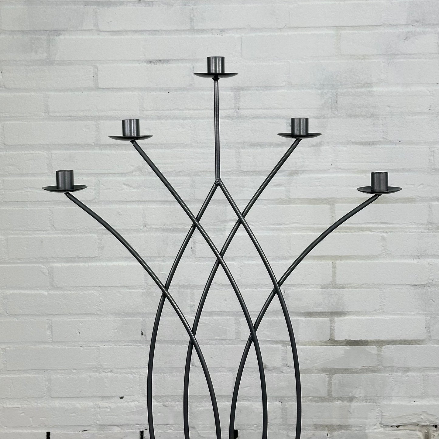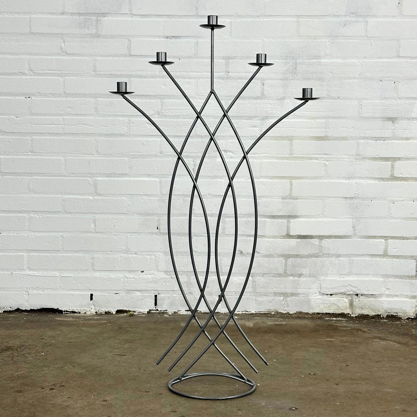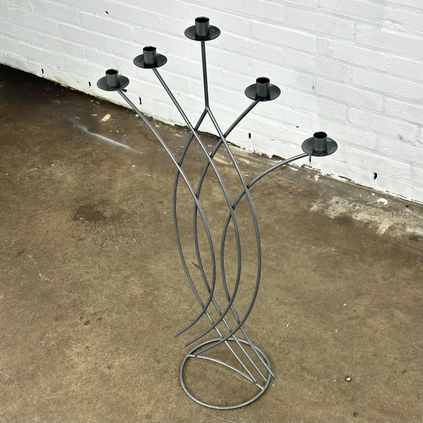 Omschrijving: Ijzer vloer kandelaar in brutalist stijl