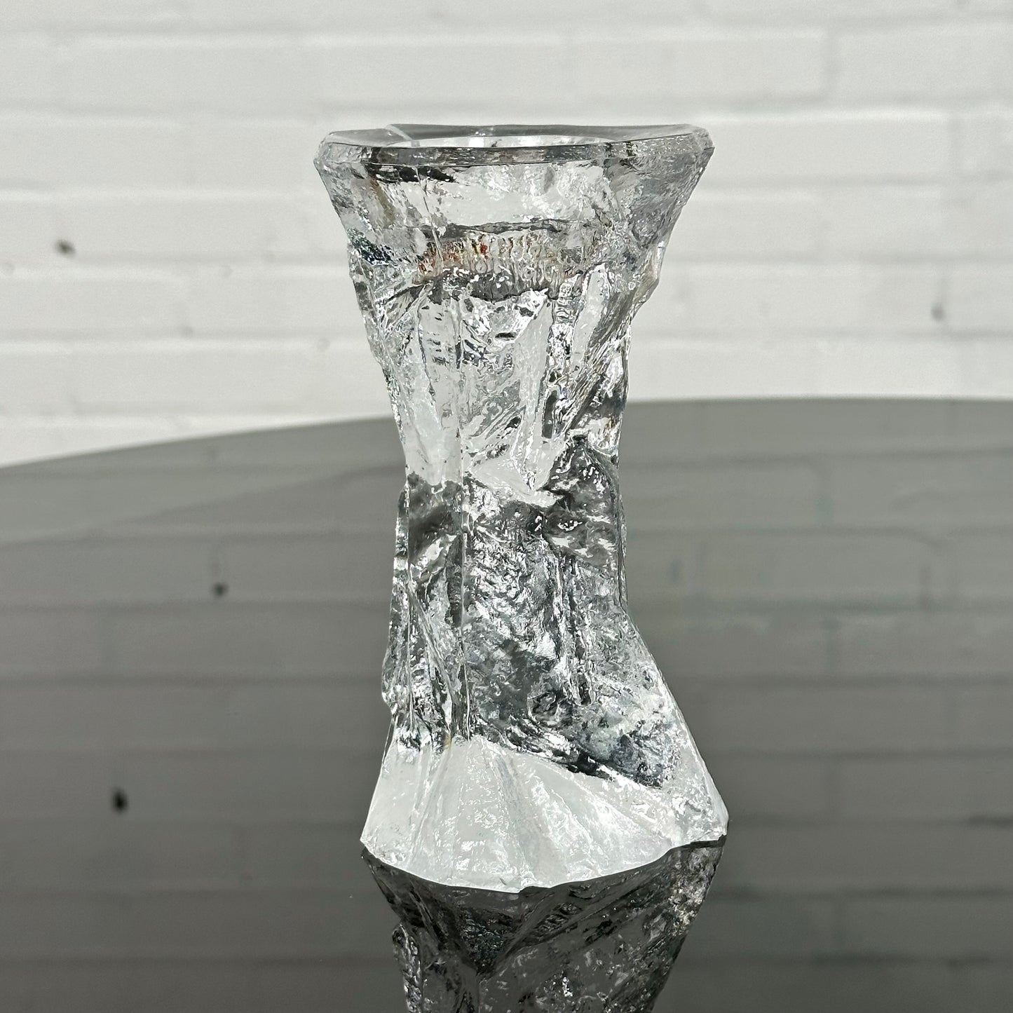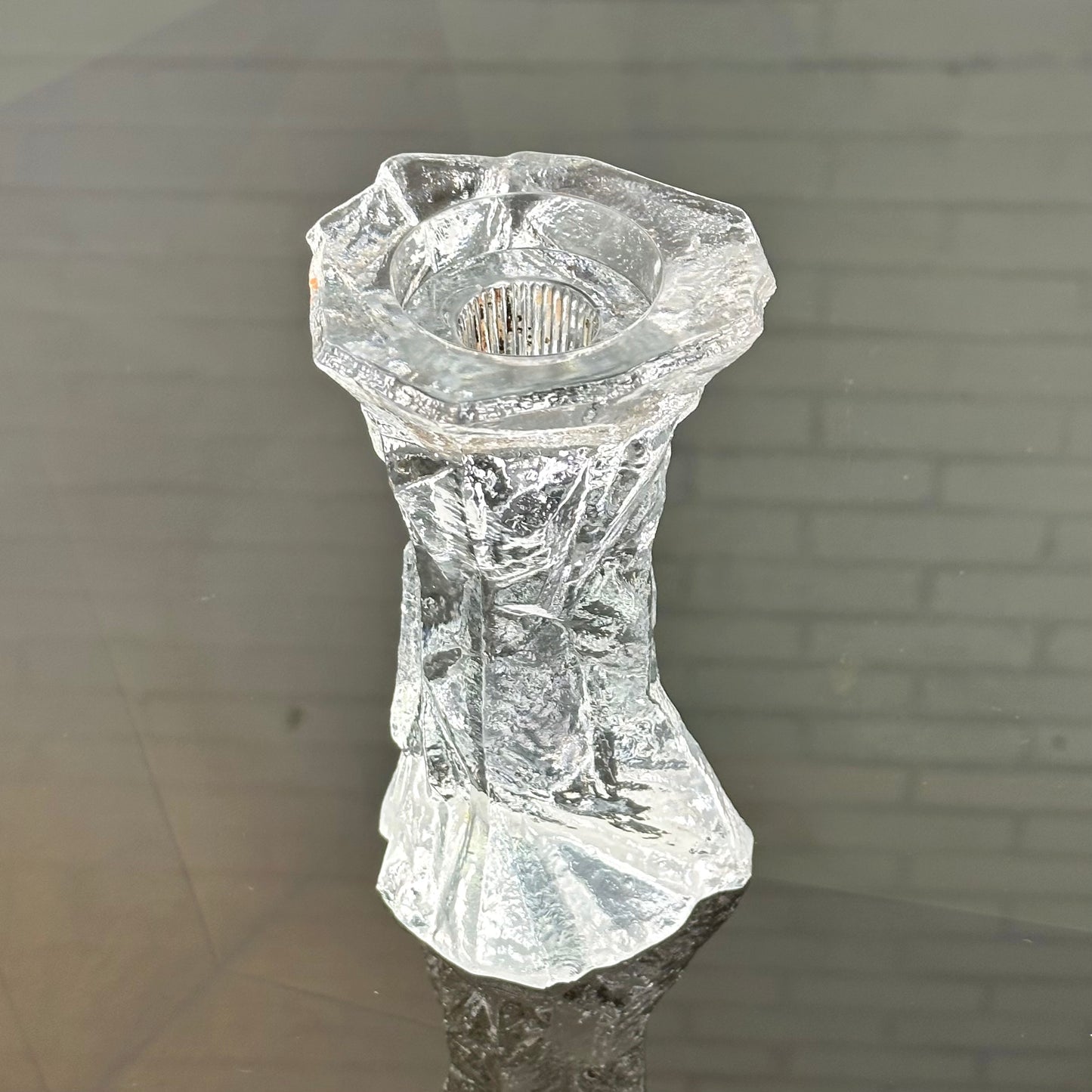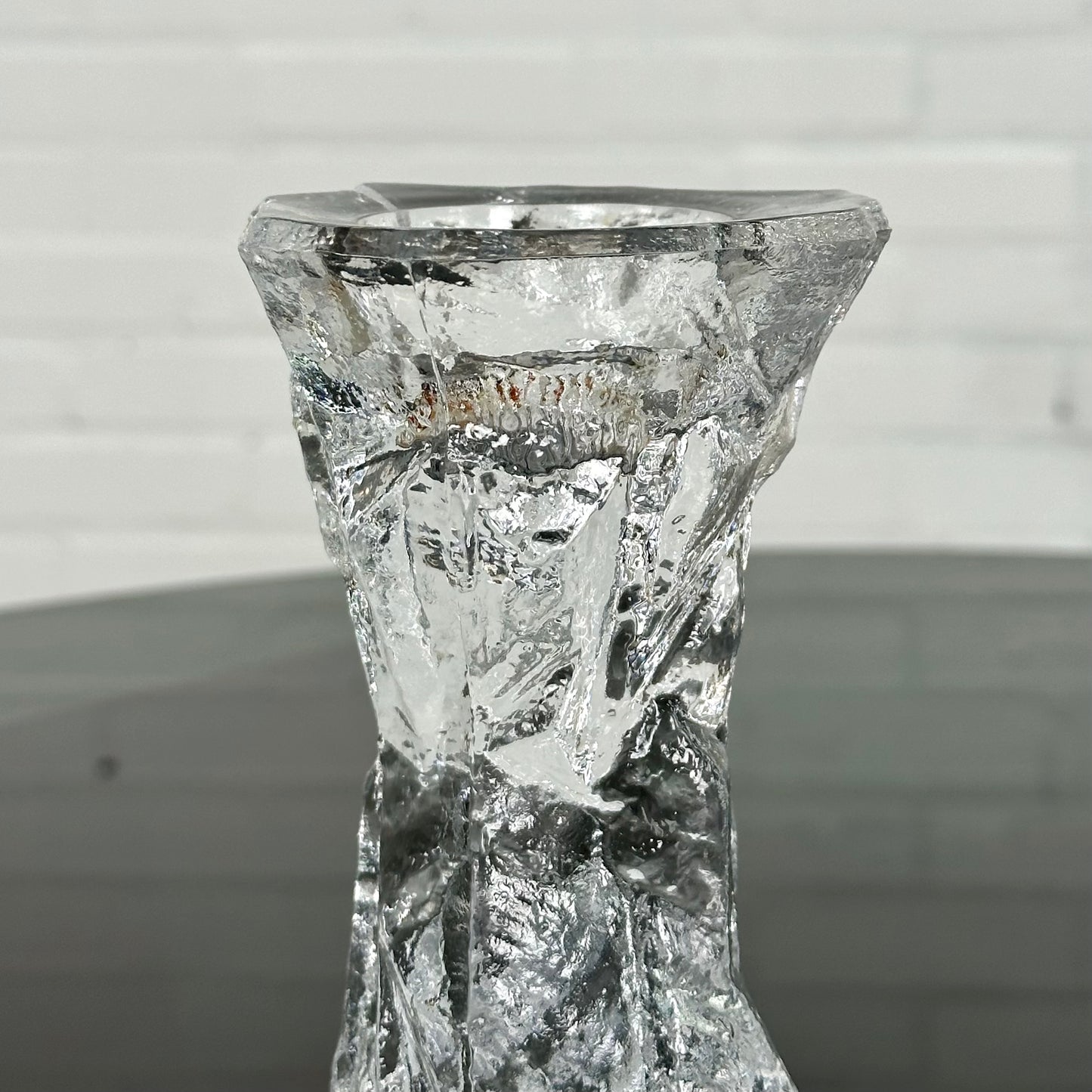 Omschrijving: Glazen vintage kandelaar in de stijl van Peill & Putzler