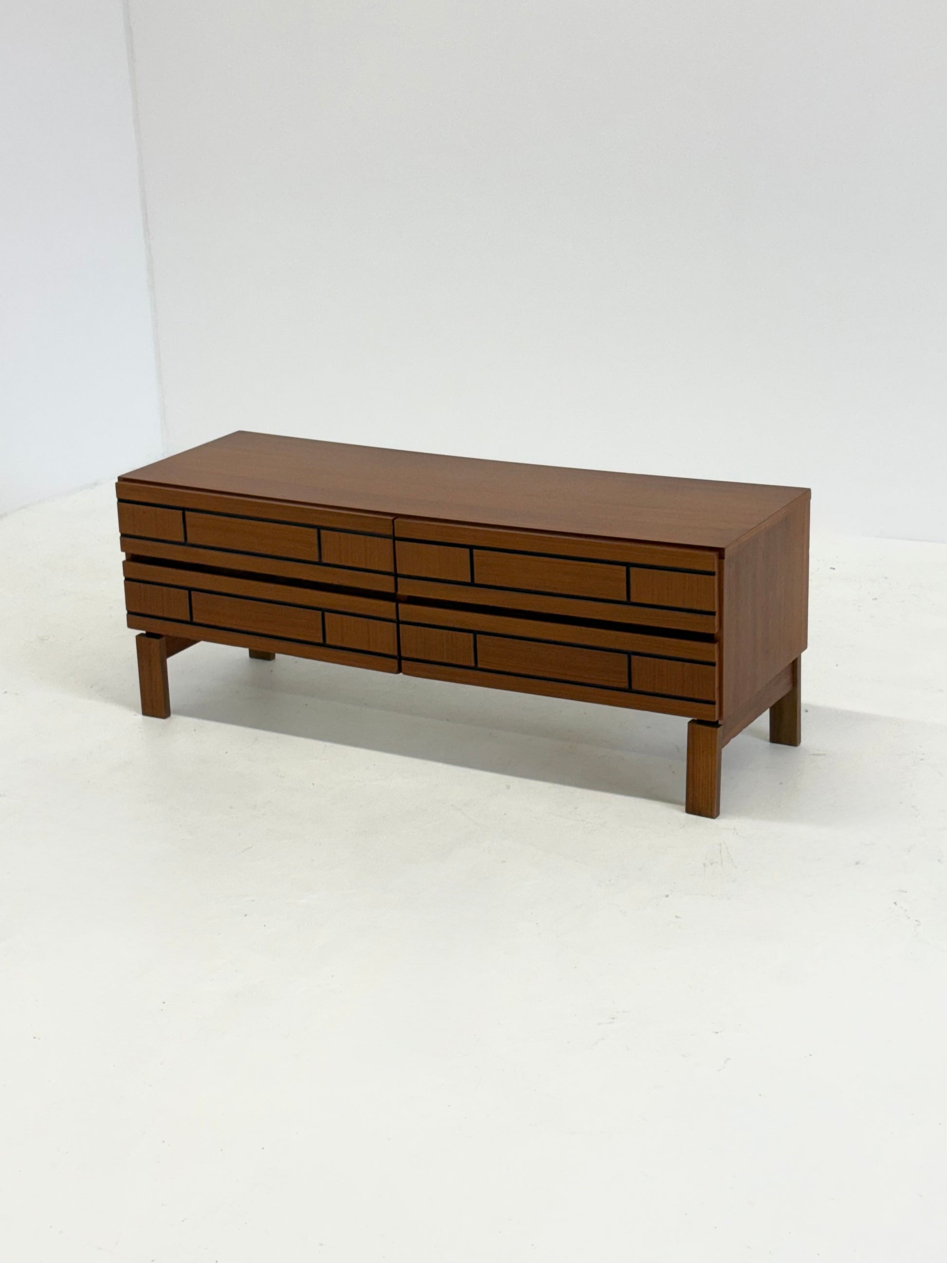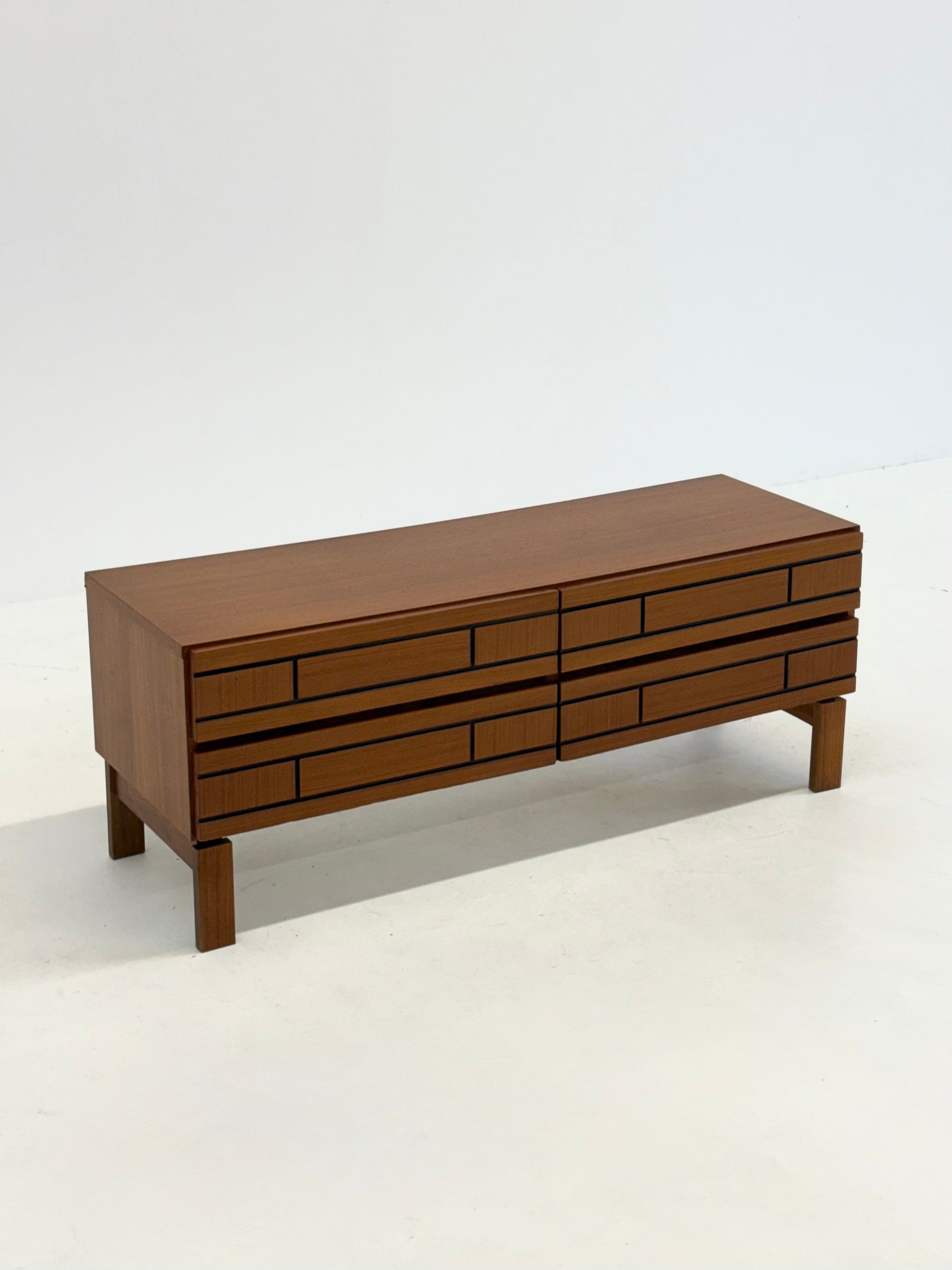 Italiaans laag houten dressoir met grafische zwarte lijnen