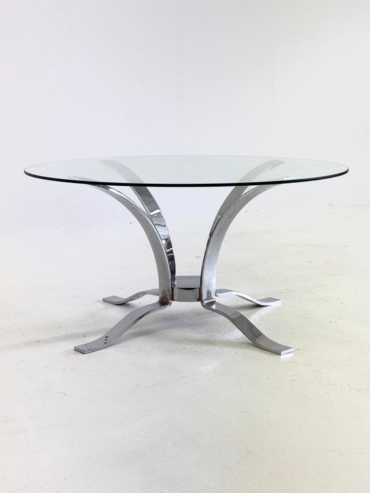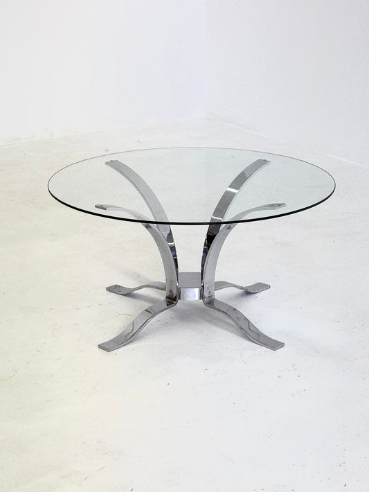 Glazen mid-century salontafel met chroom frame