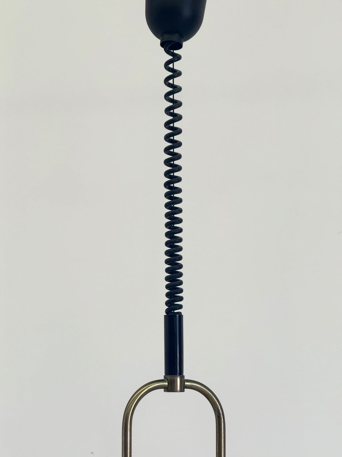 De lamp is uitgevoerd met een trekpendel, waardoor je de hoogte kunt verstellen. De totale hoogte varieert van 70 cm (kortste stand) tot 150 cm (langste stand).