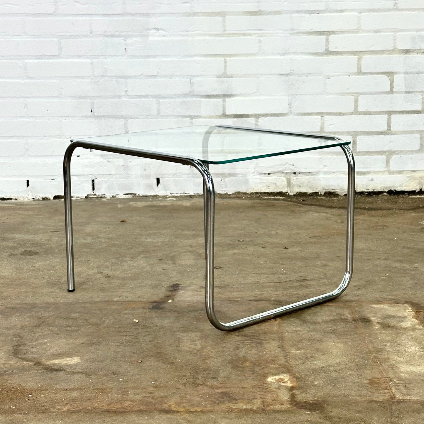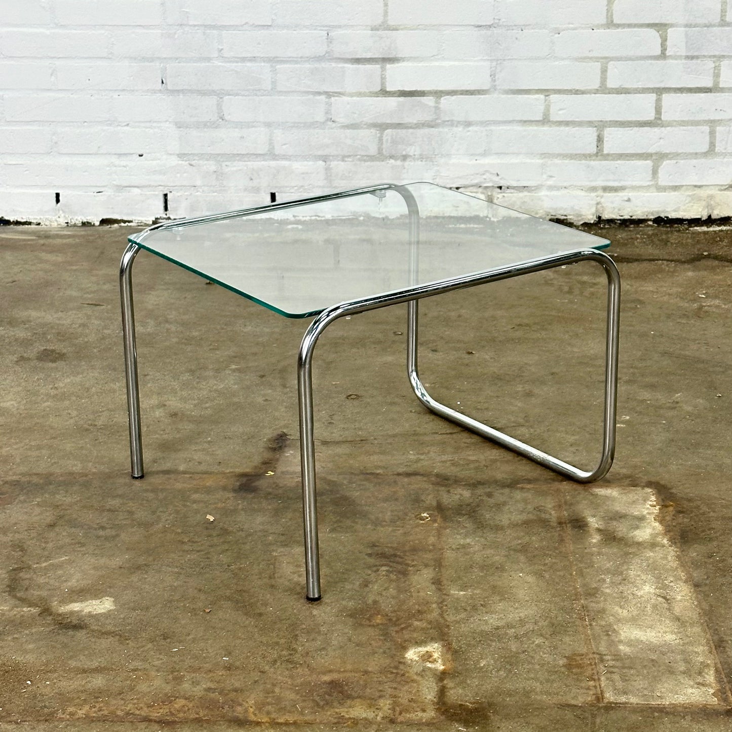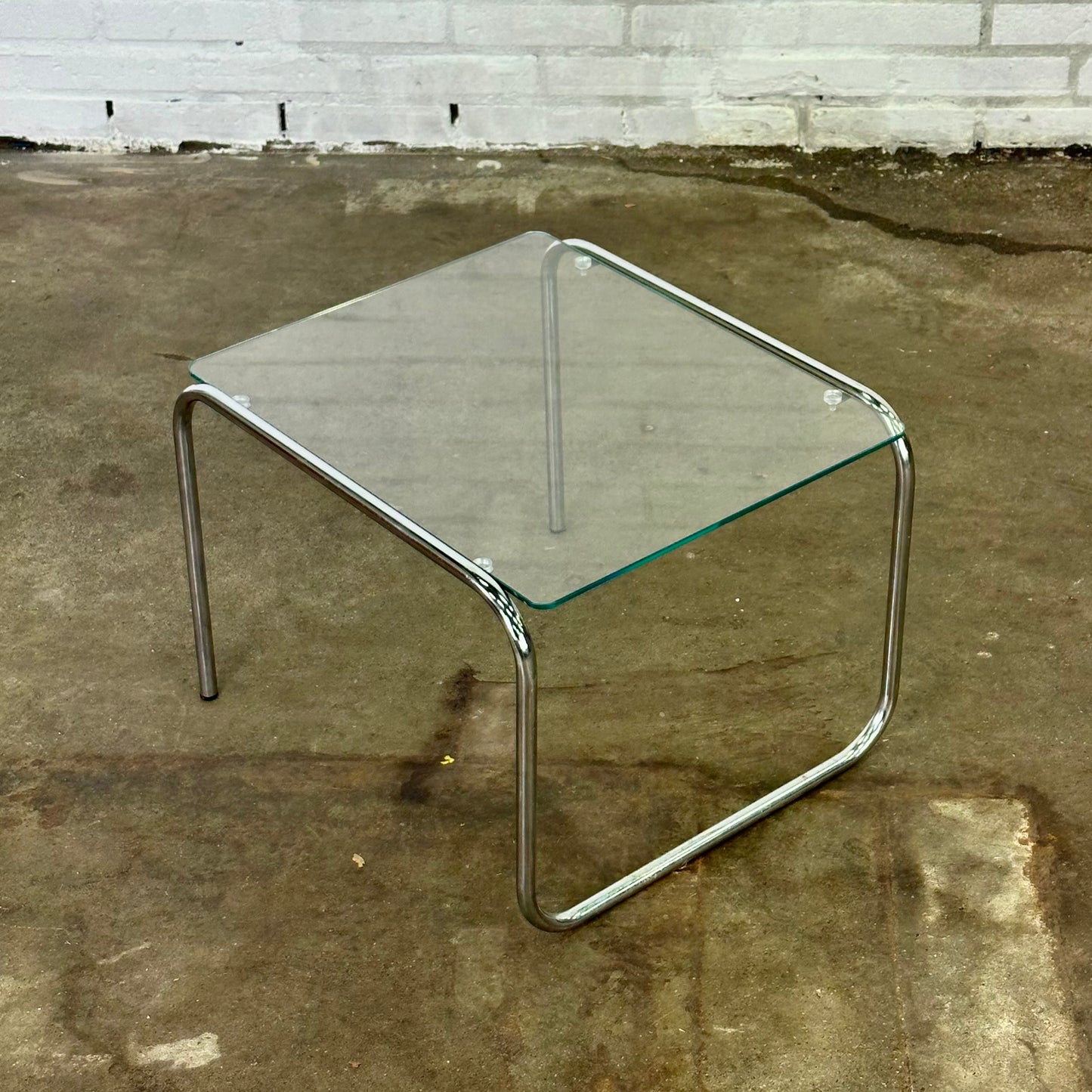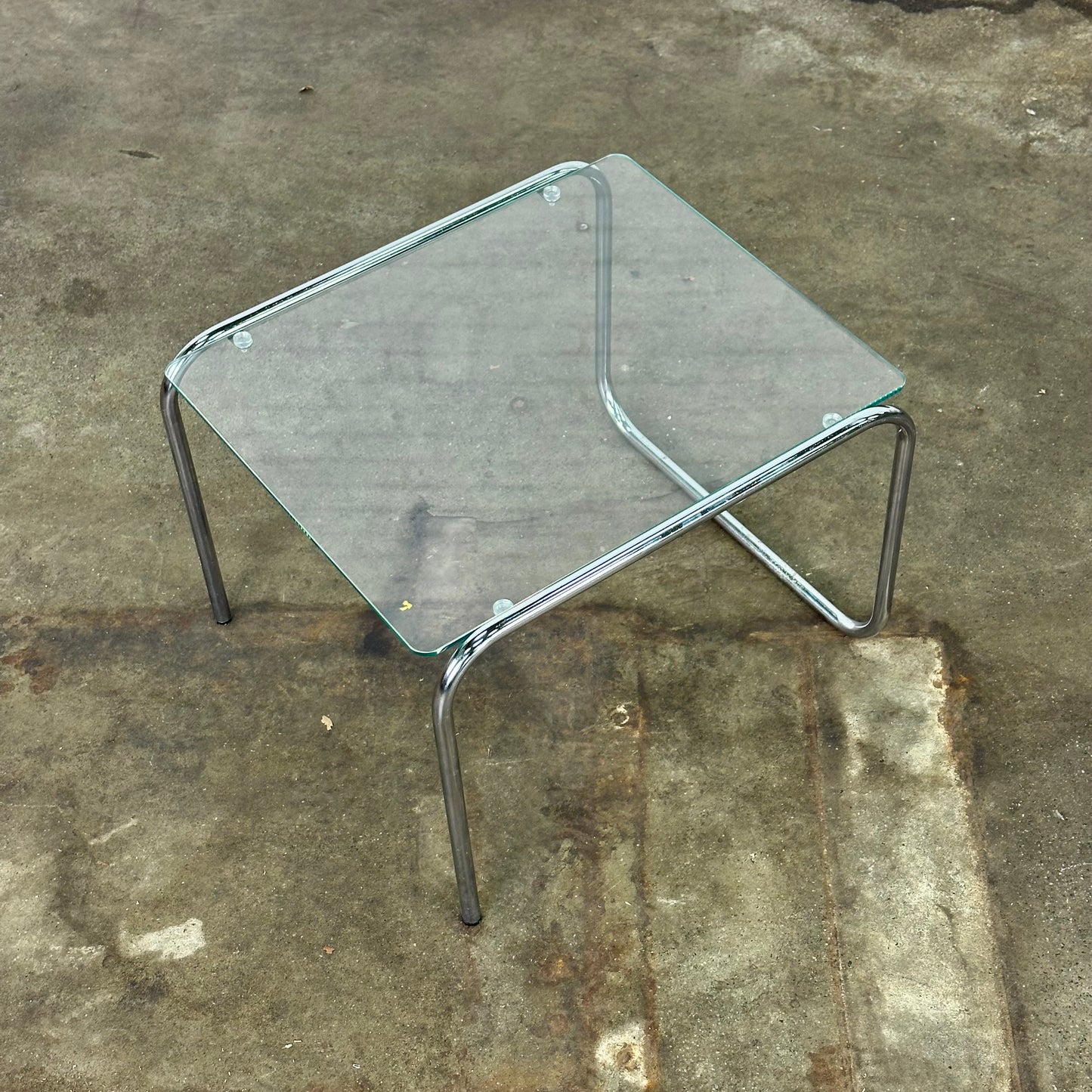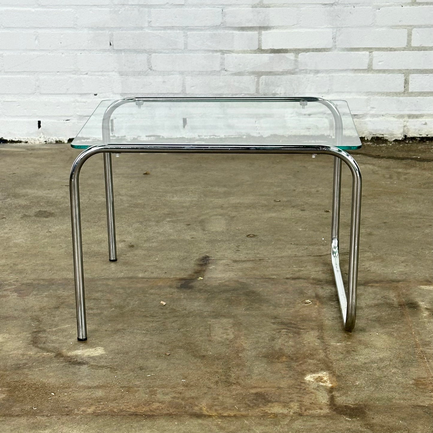 Vintage buisframe bijzettafel met glazen glad