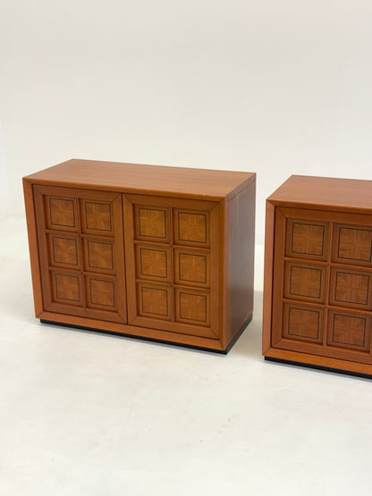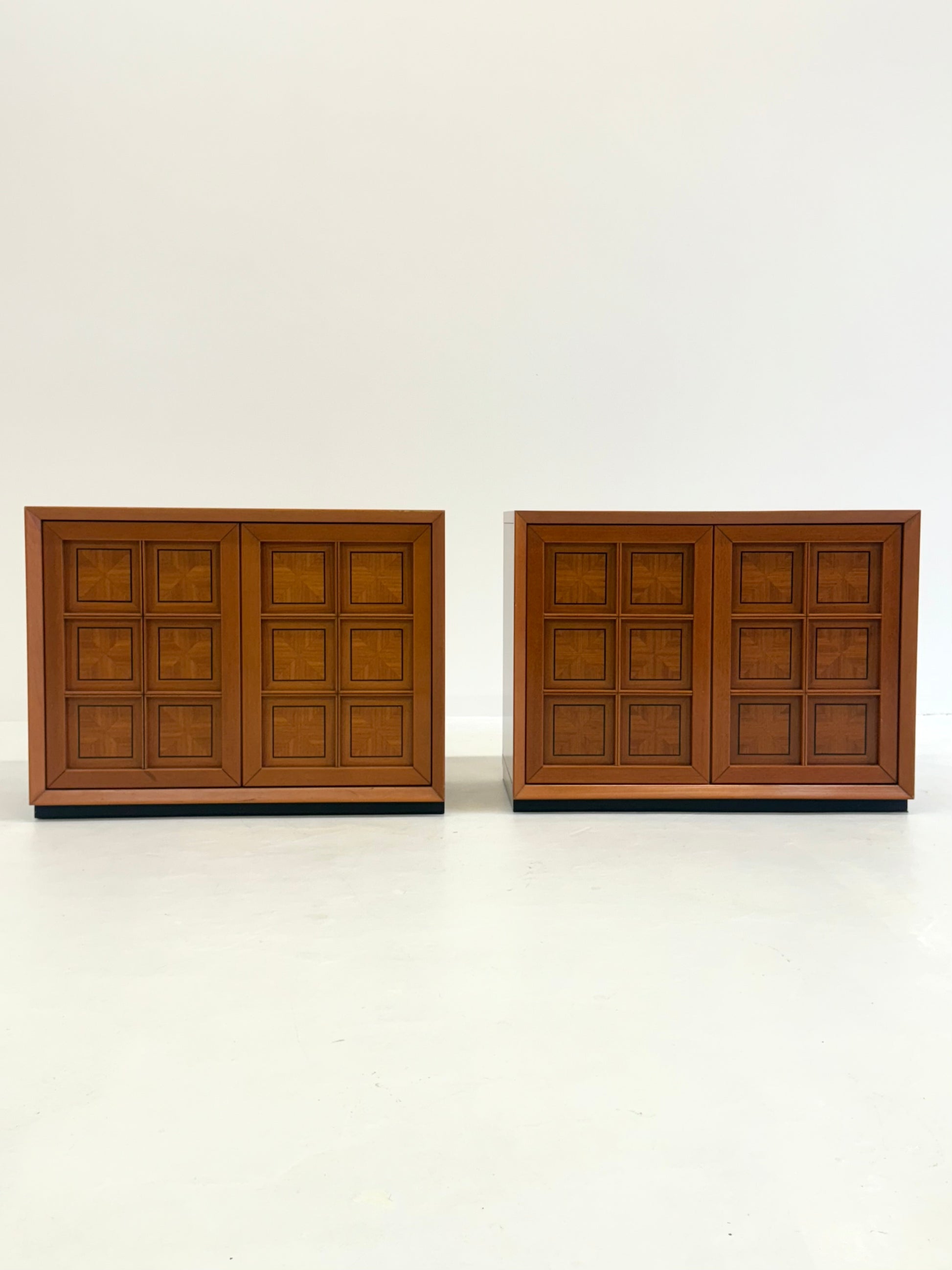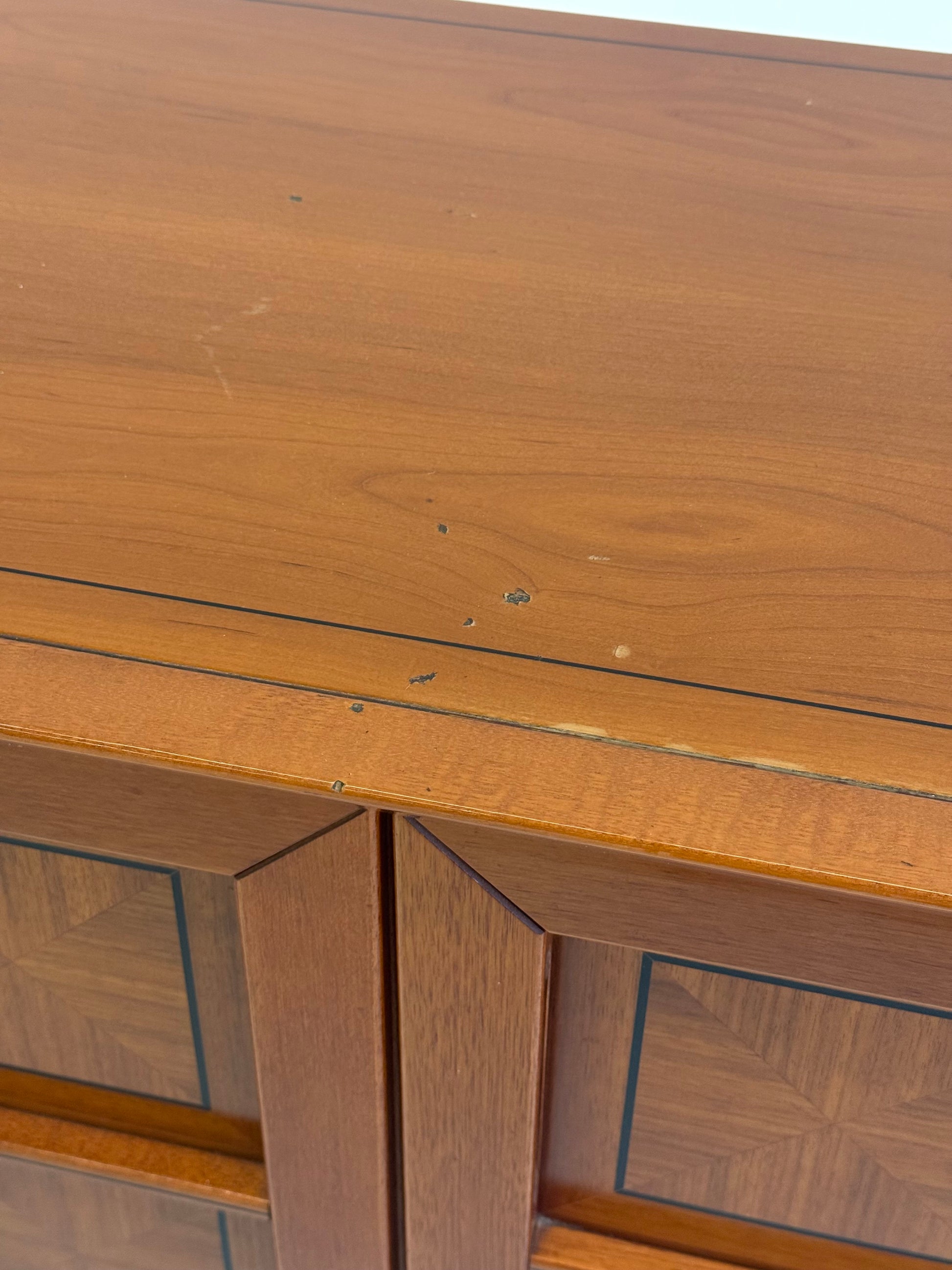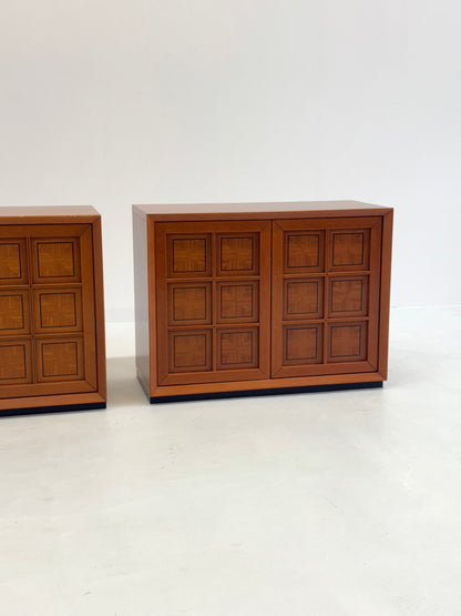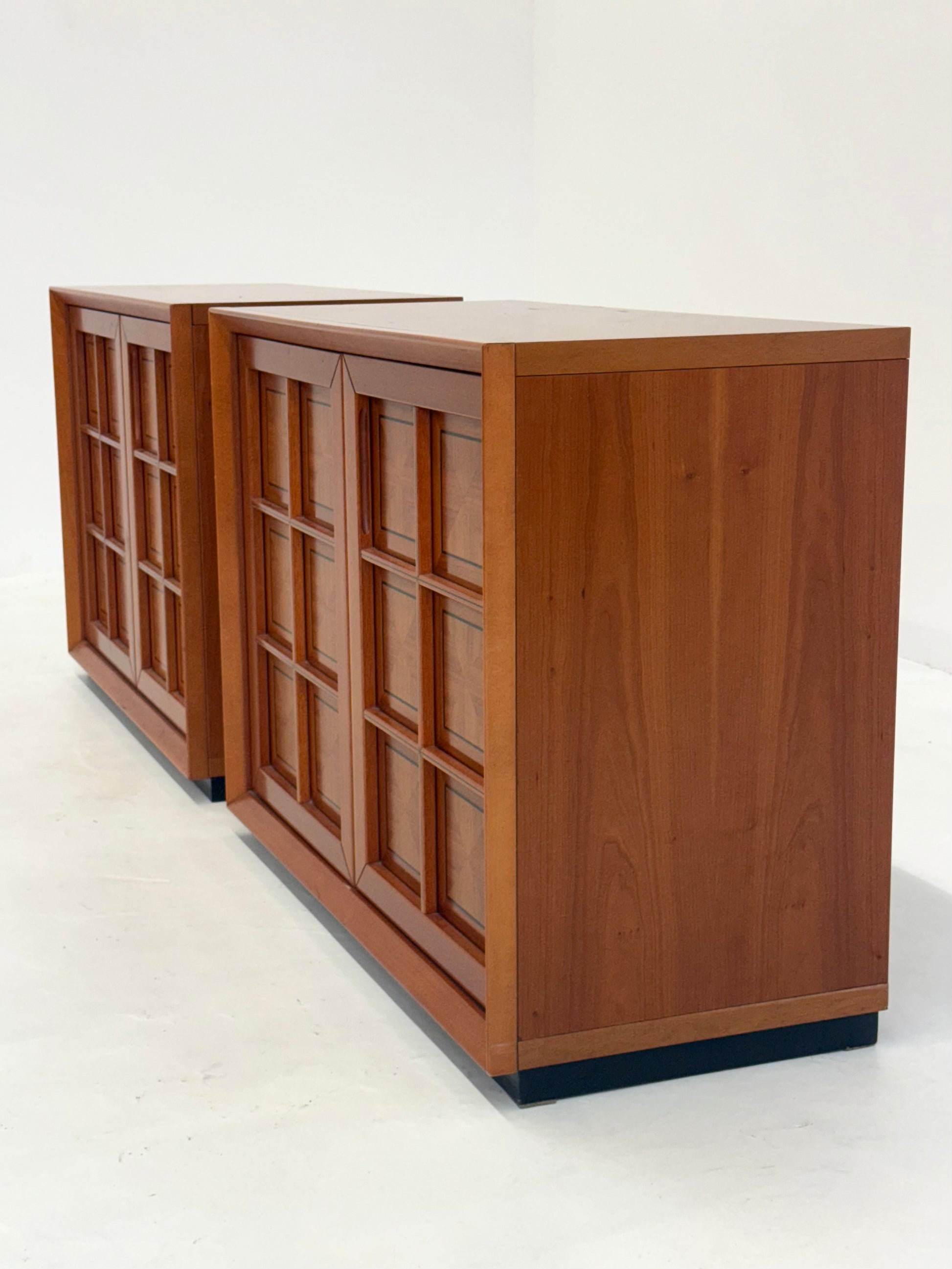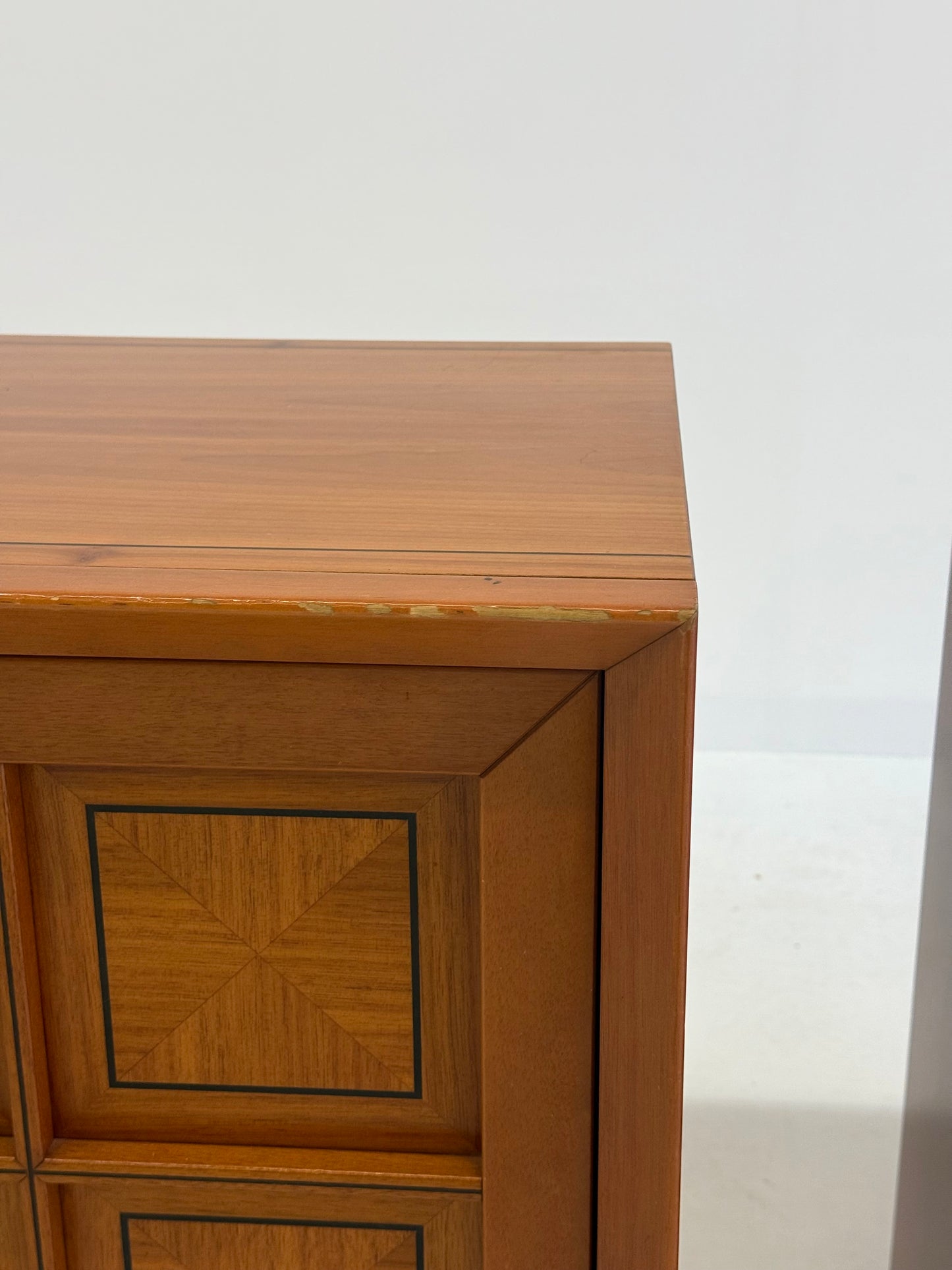 Imposant vintage brutalist sideboard uit Italië, ontworpen door Caccia alla Volpe voor Linea Arredo. Het meubel valt op door het geometrische reliëfpatroon en de rijke houttekening – een uitgesproken ontwerp dat kracht en karakter toevoegt aan ieder interieur.