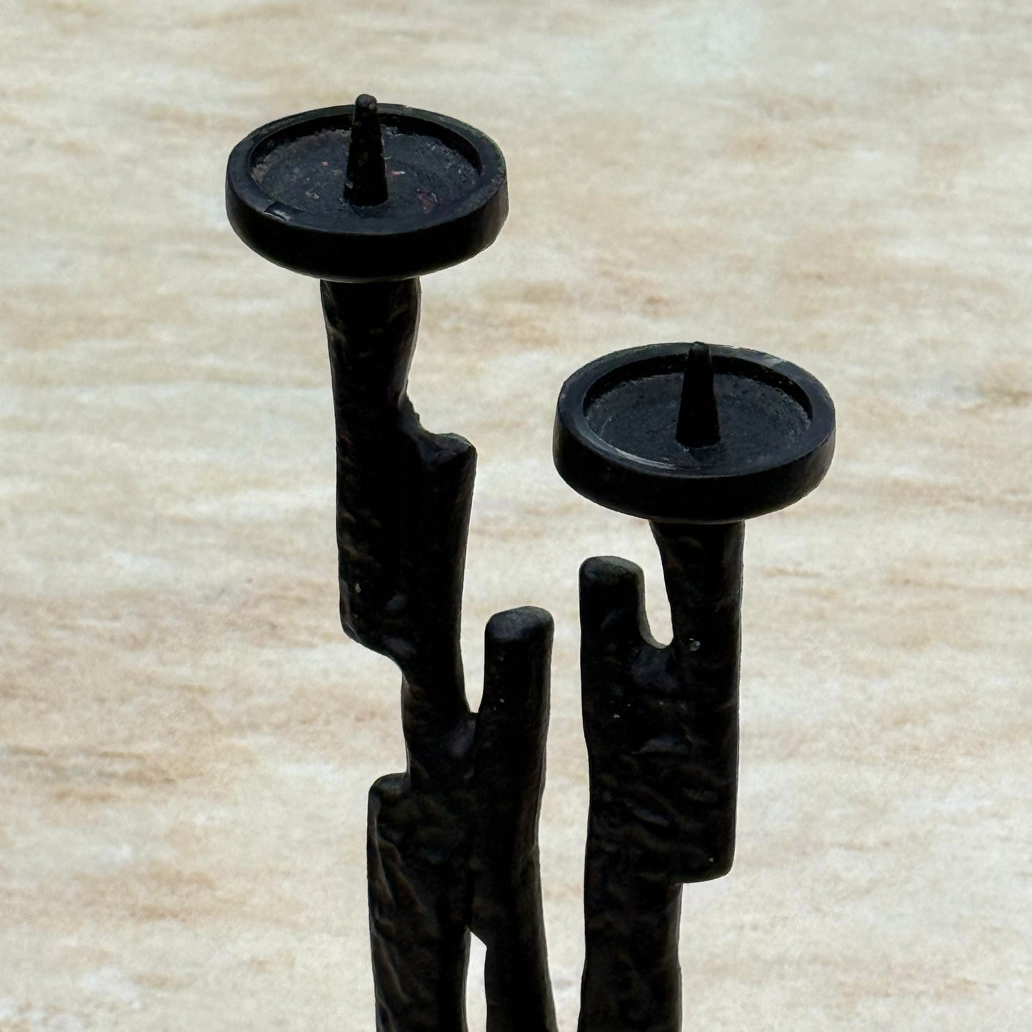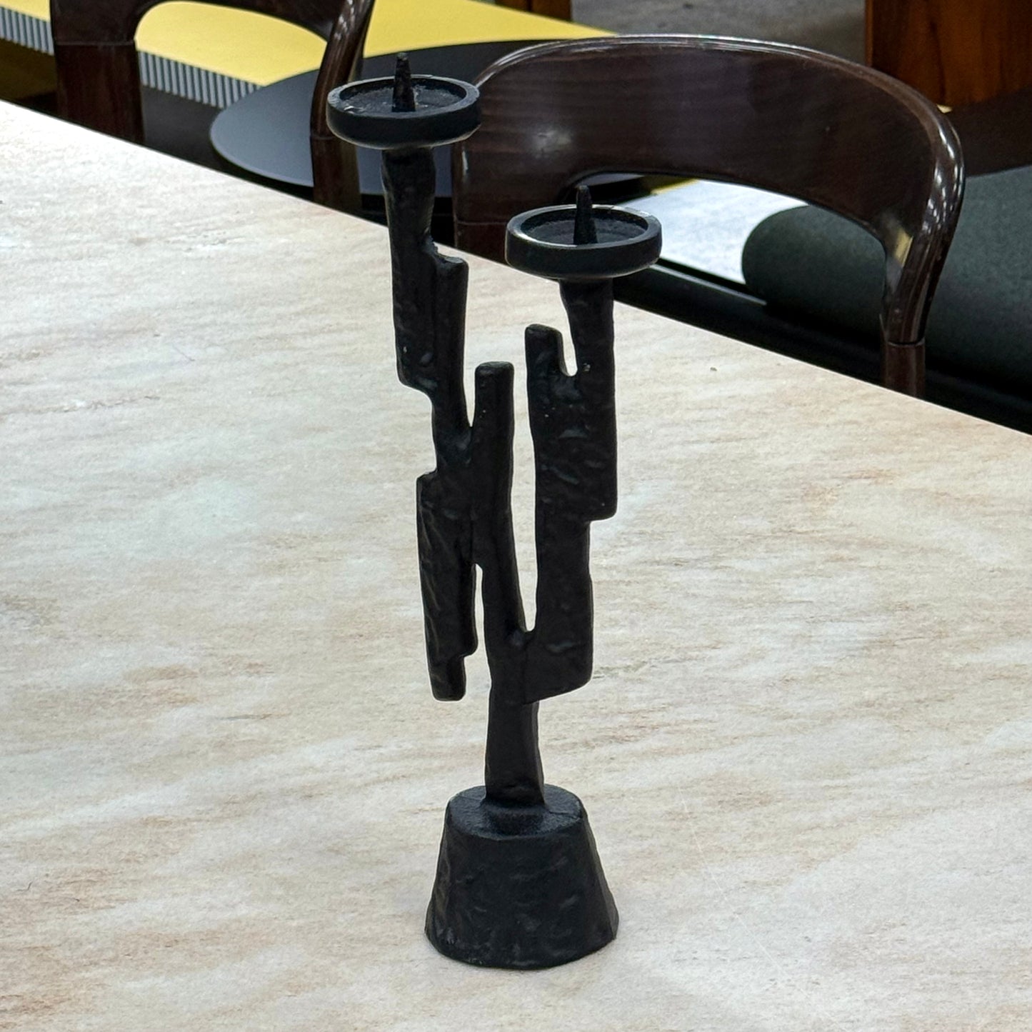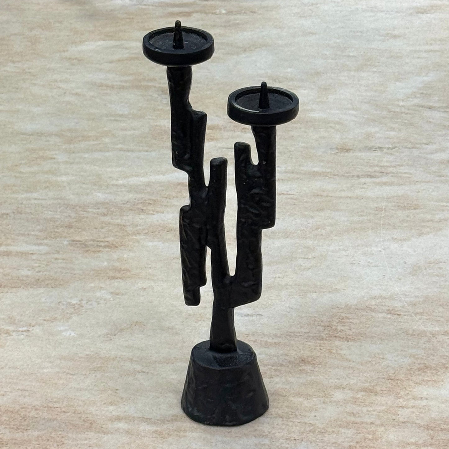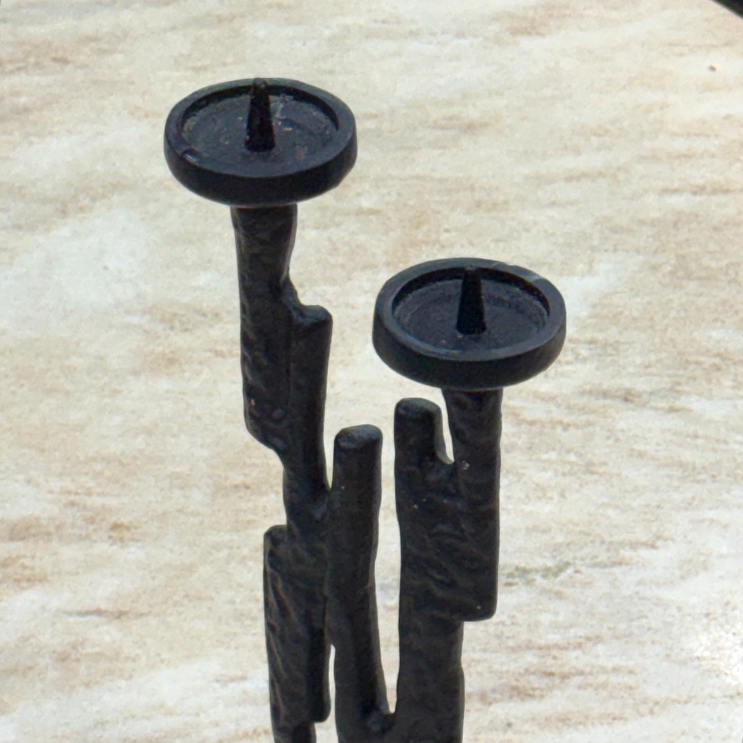 Deze kandelaar van Horst Dalbeck uit de jaren 70 combineert functionaliteit en kunstzinnigheid in een krachtig, sculpturaal ontwerp. Gemaakt van robuust gietijzer, is dit Duitse designstuk een indrukwekkende toevoeging aan elk interieur, perfect om kaarsen op een opvallende manier te presenteren.