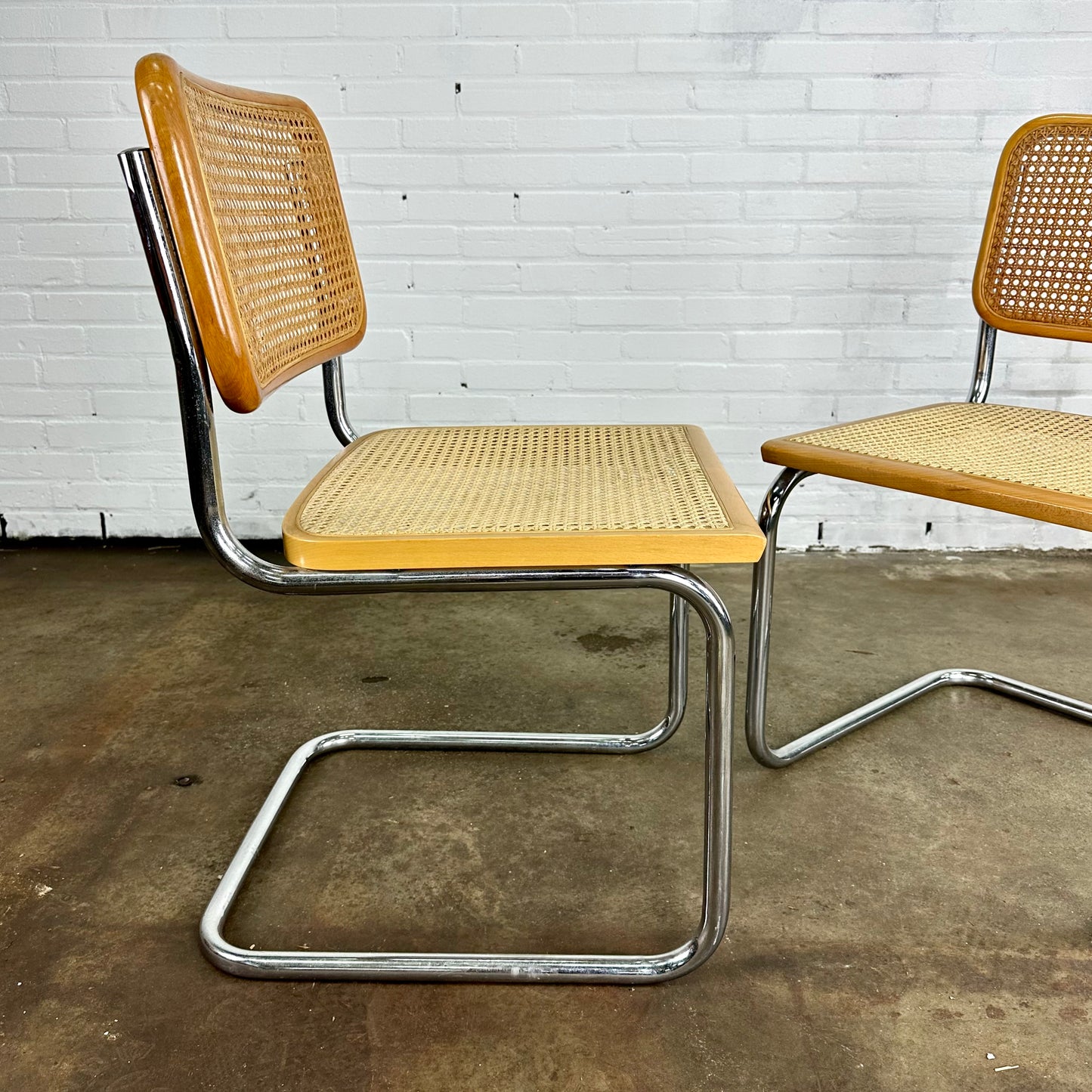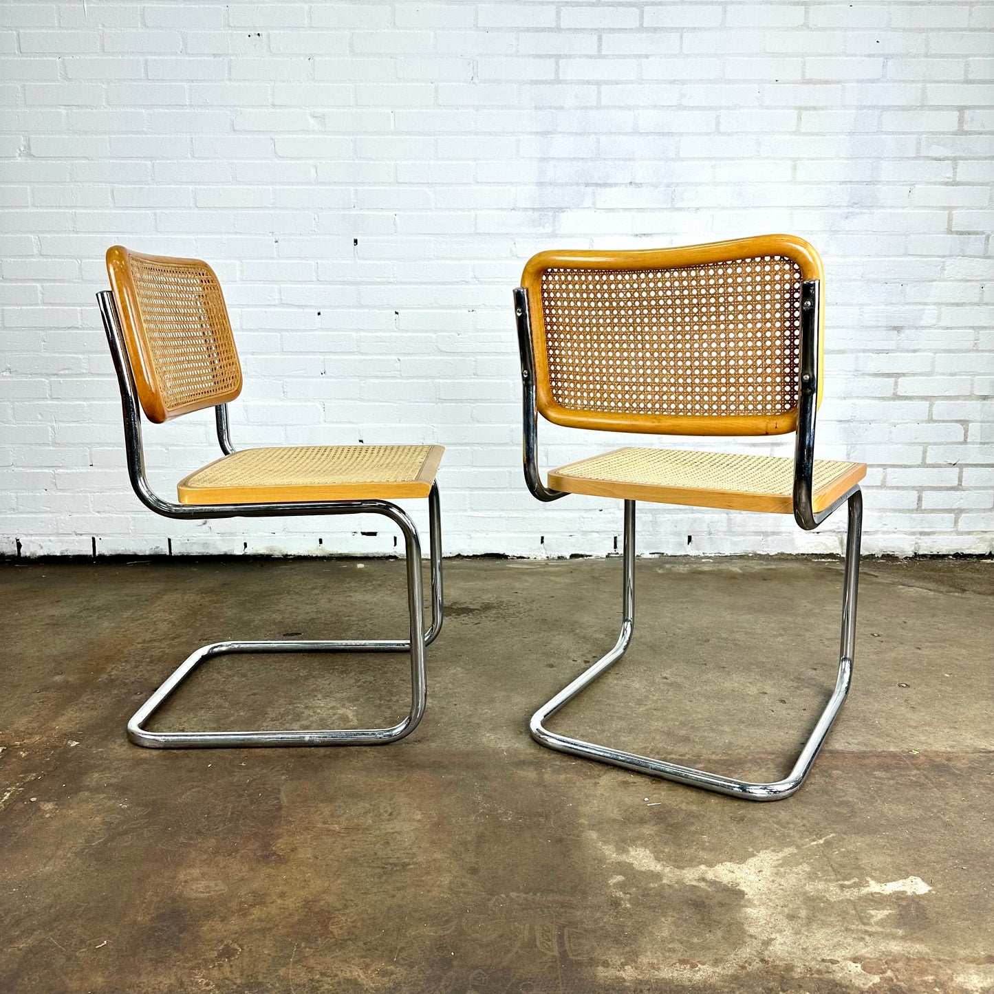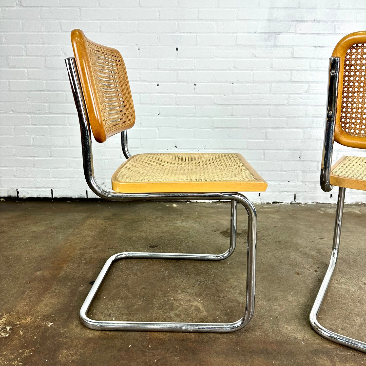 Omschrijving: Cesca webbing stoelen, geïnspireerd op de Marcel Breuer voor Thonet