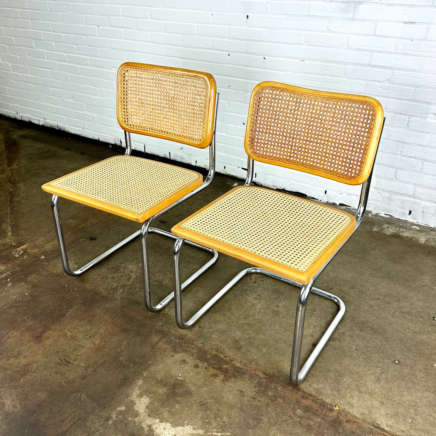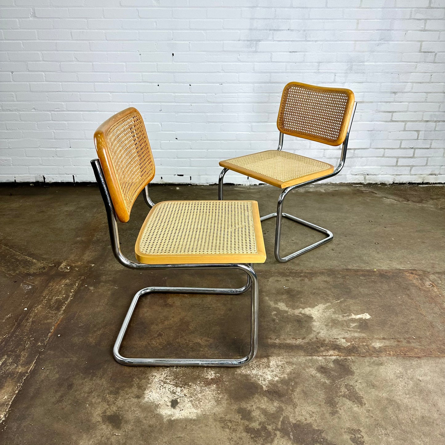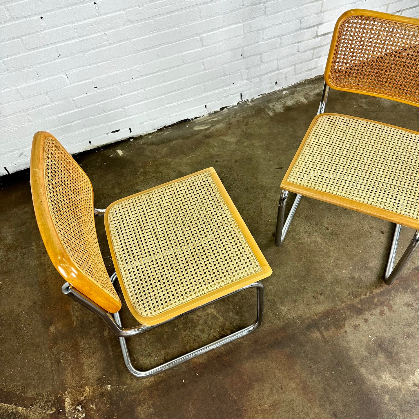 Omschrijving: Cesca webbing stoelen, geïnspireerd op de Marcel Breuer voor Thonet