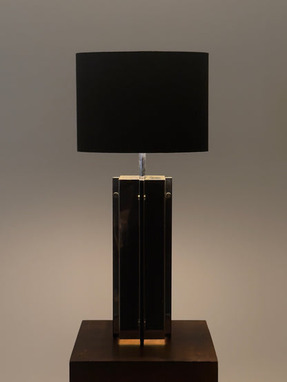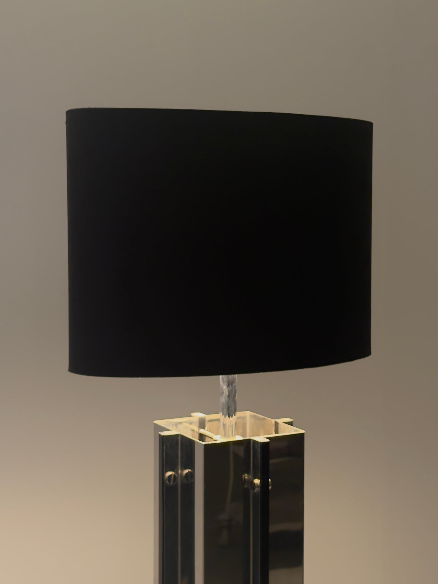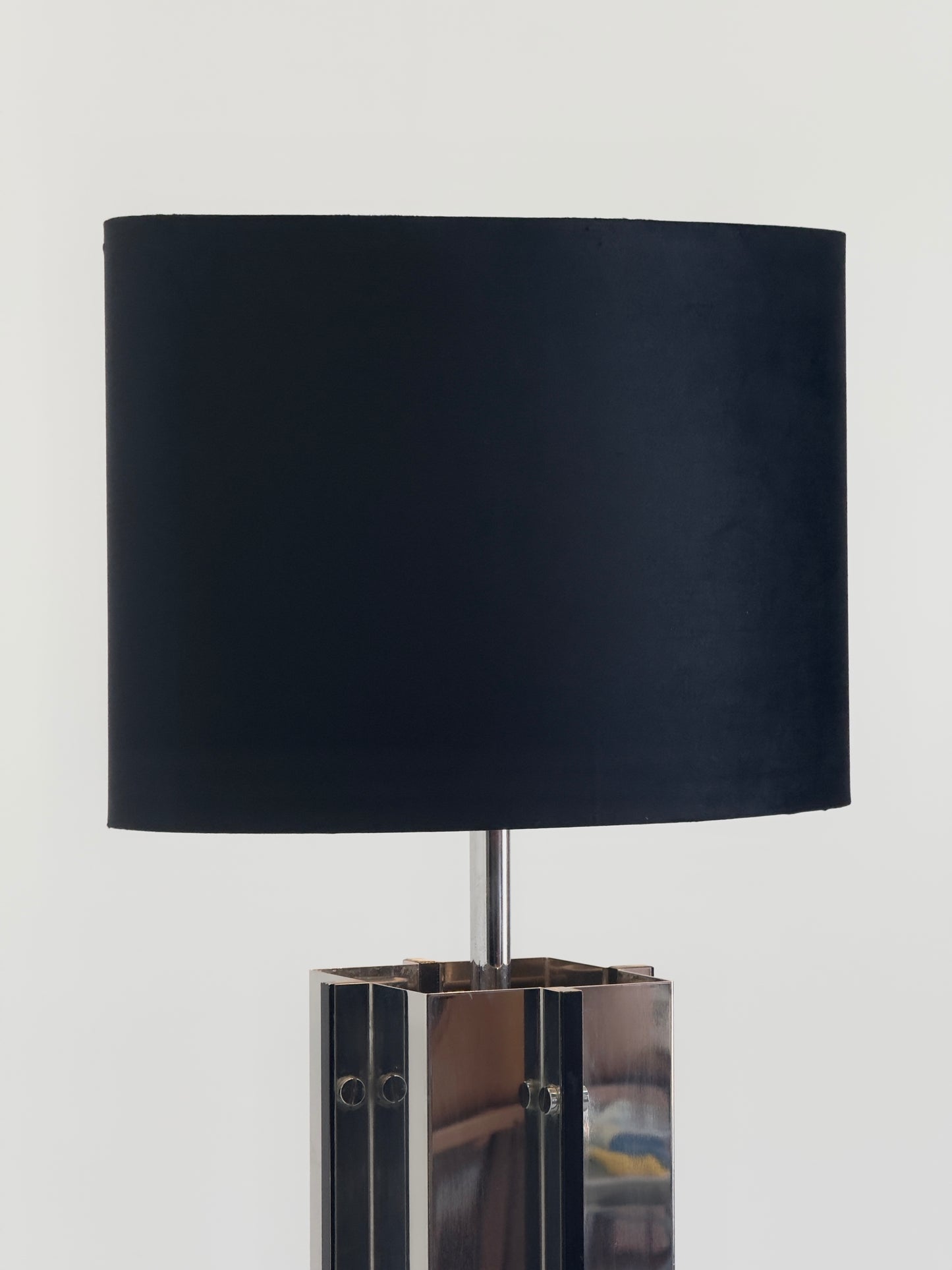 De nieuwe zwarte lampenkap zorgt voor een prachtig contrast en benadrukt de moderne en sobere lijnen van de lamp. De lamp verkeert in zeer goede vintage staat en is klaar voor gebruik.