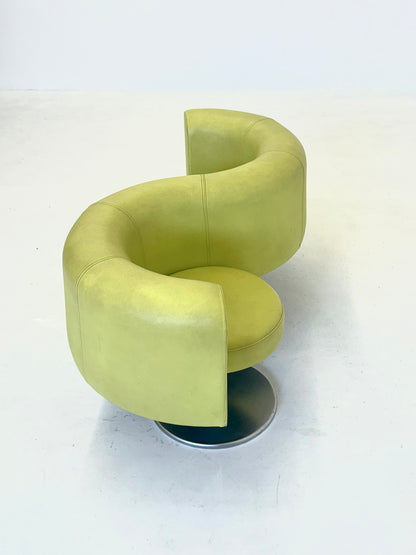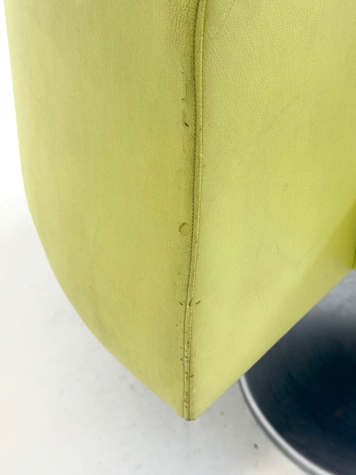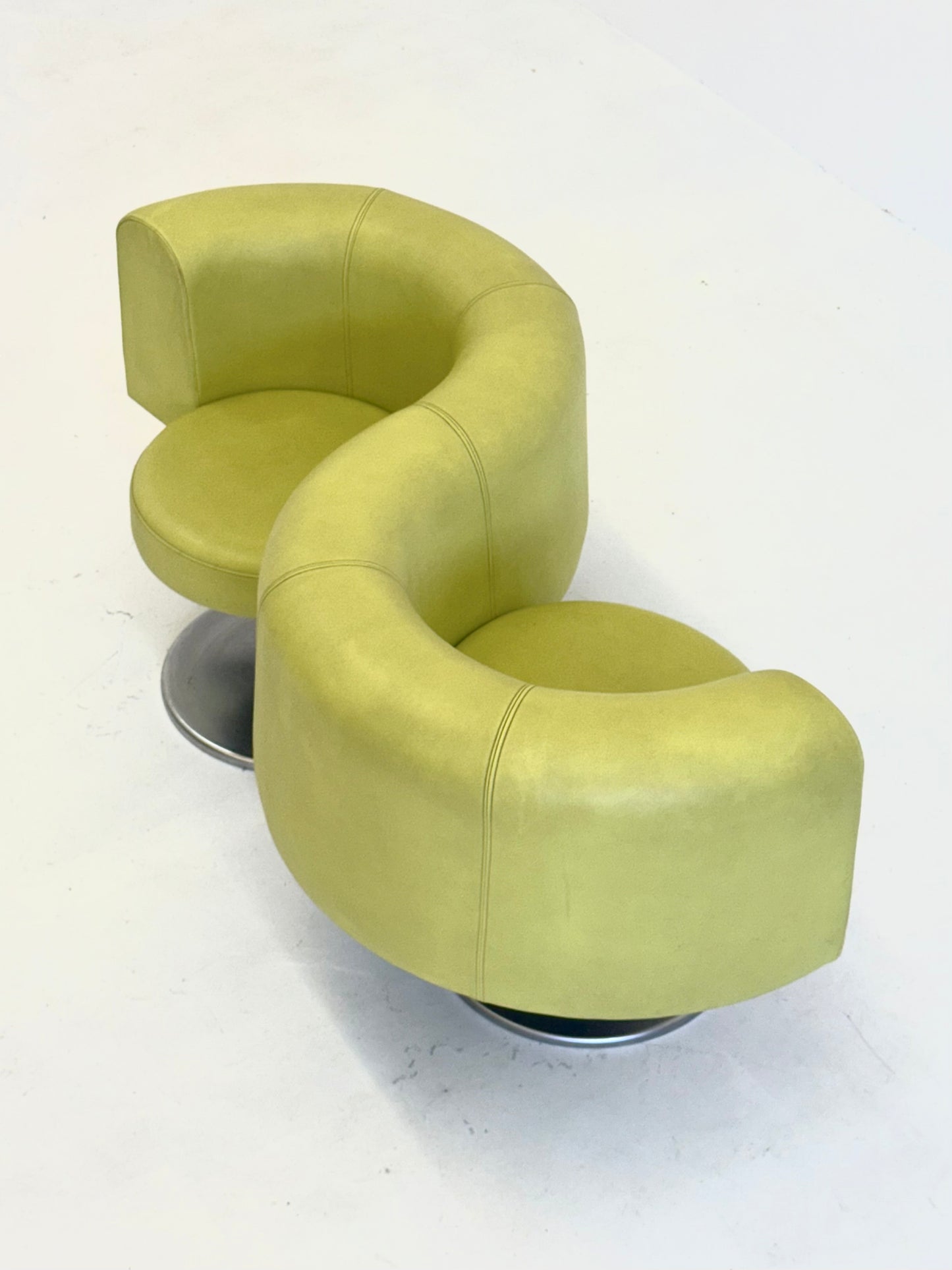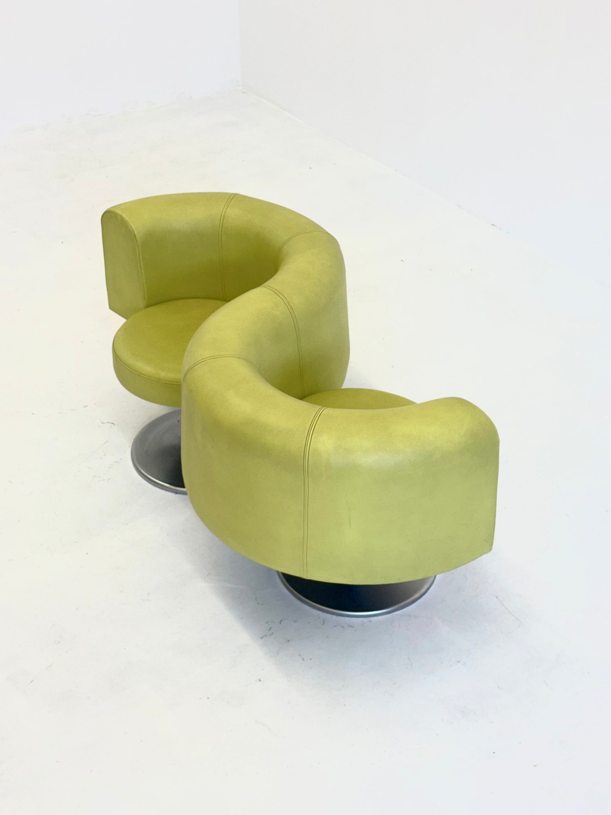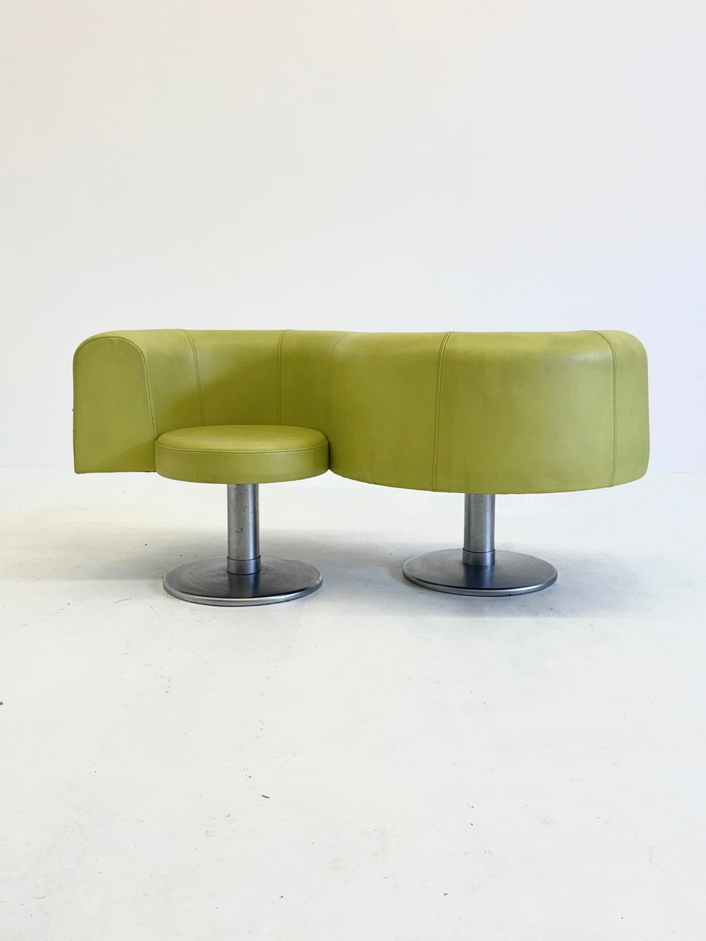Vintage space age tête-à-tête bankje in geelgroen leer