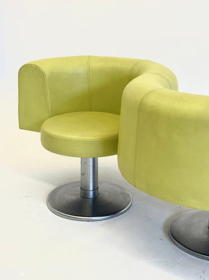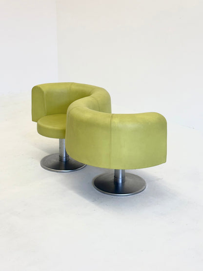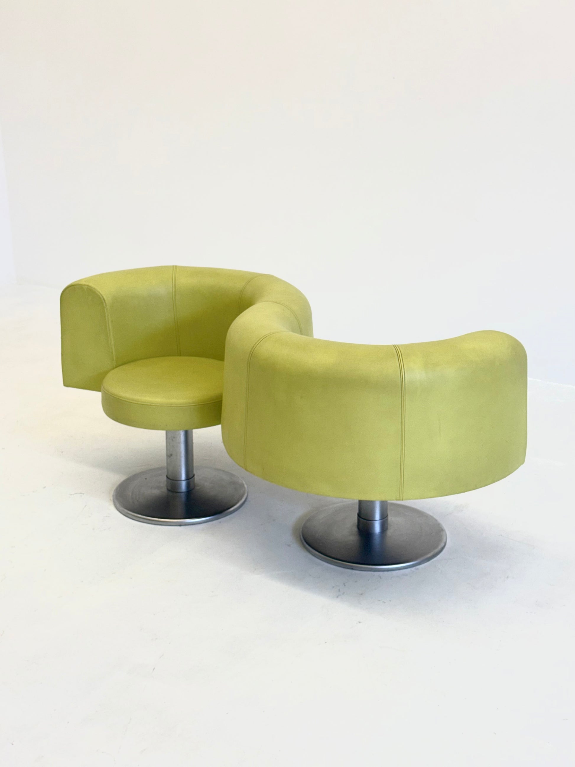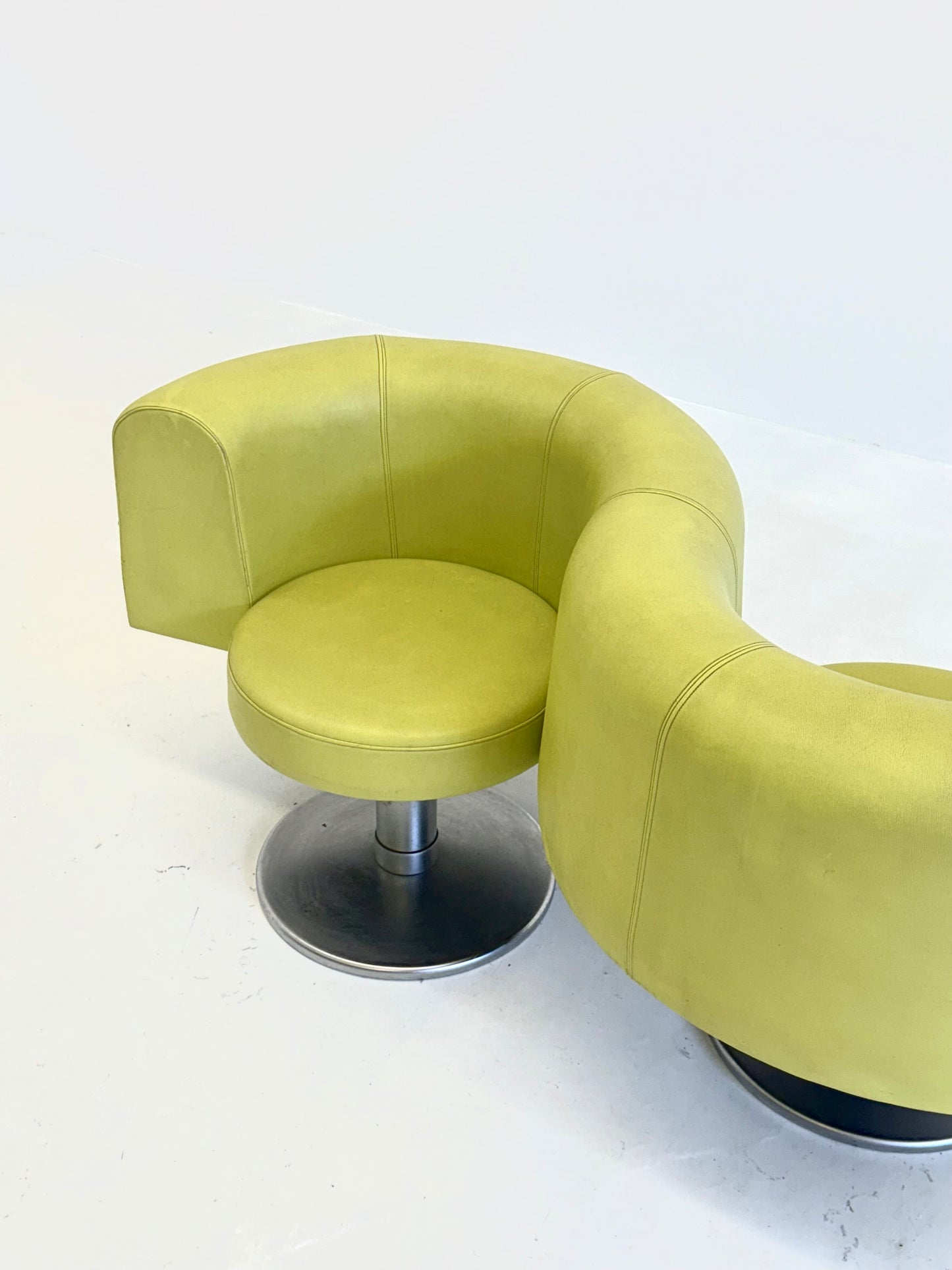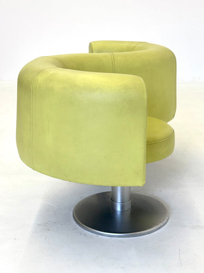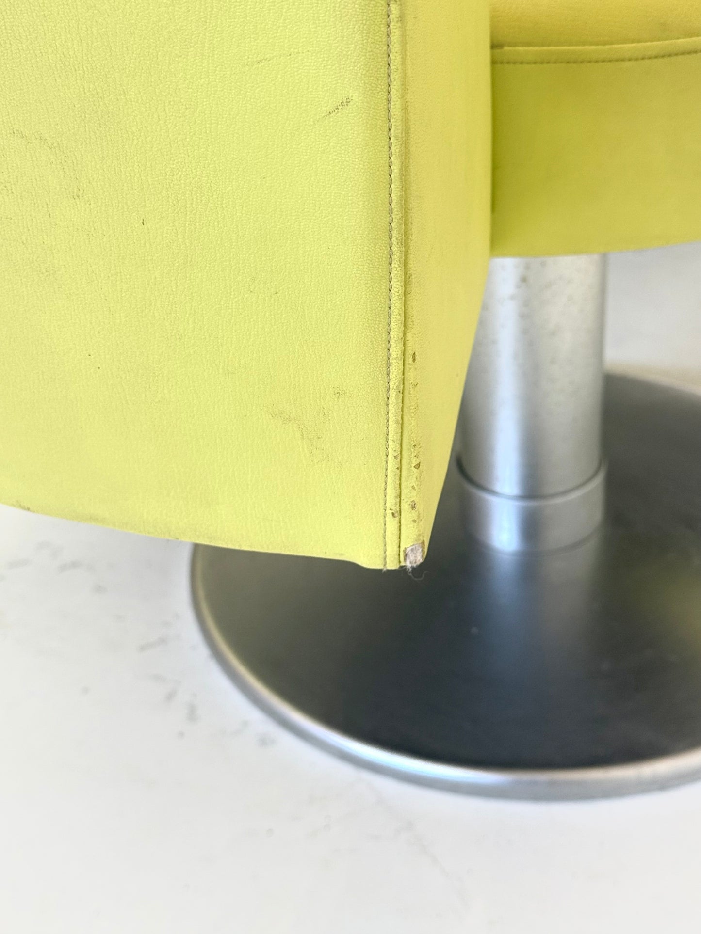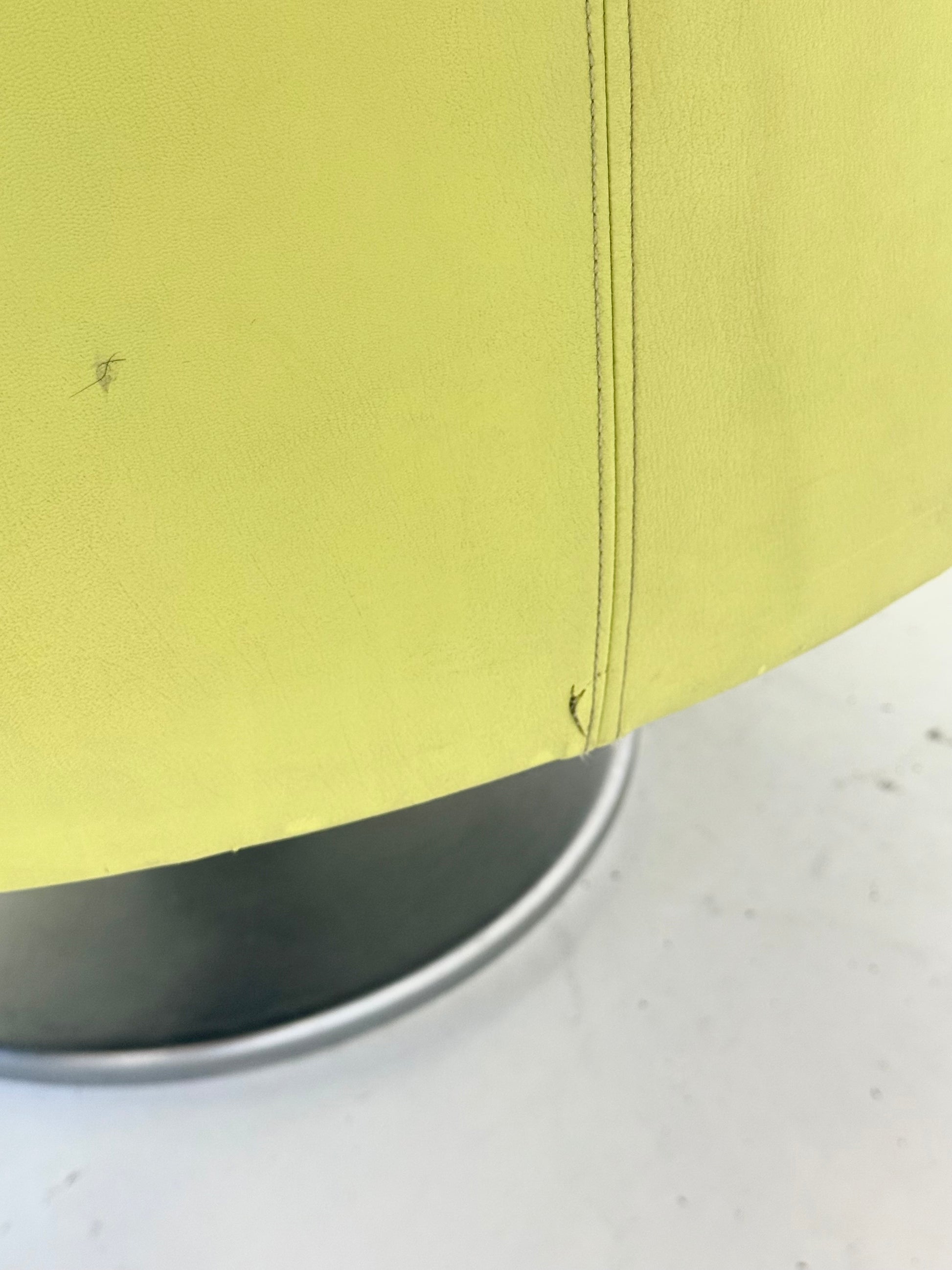 Vintage space age tête-à-tête bankje in geelgroen leer