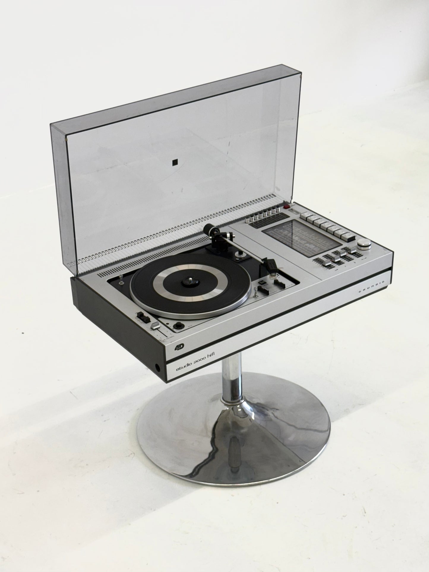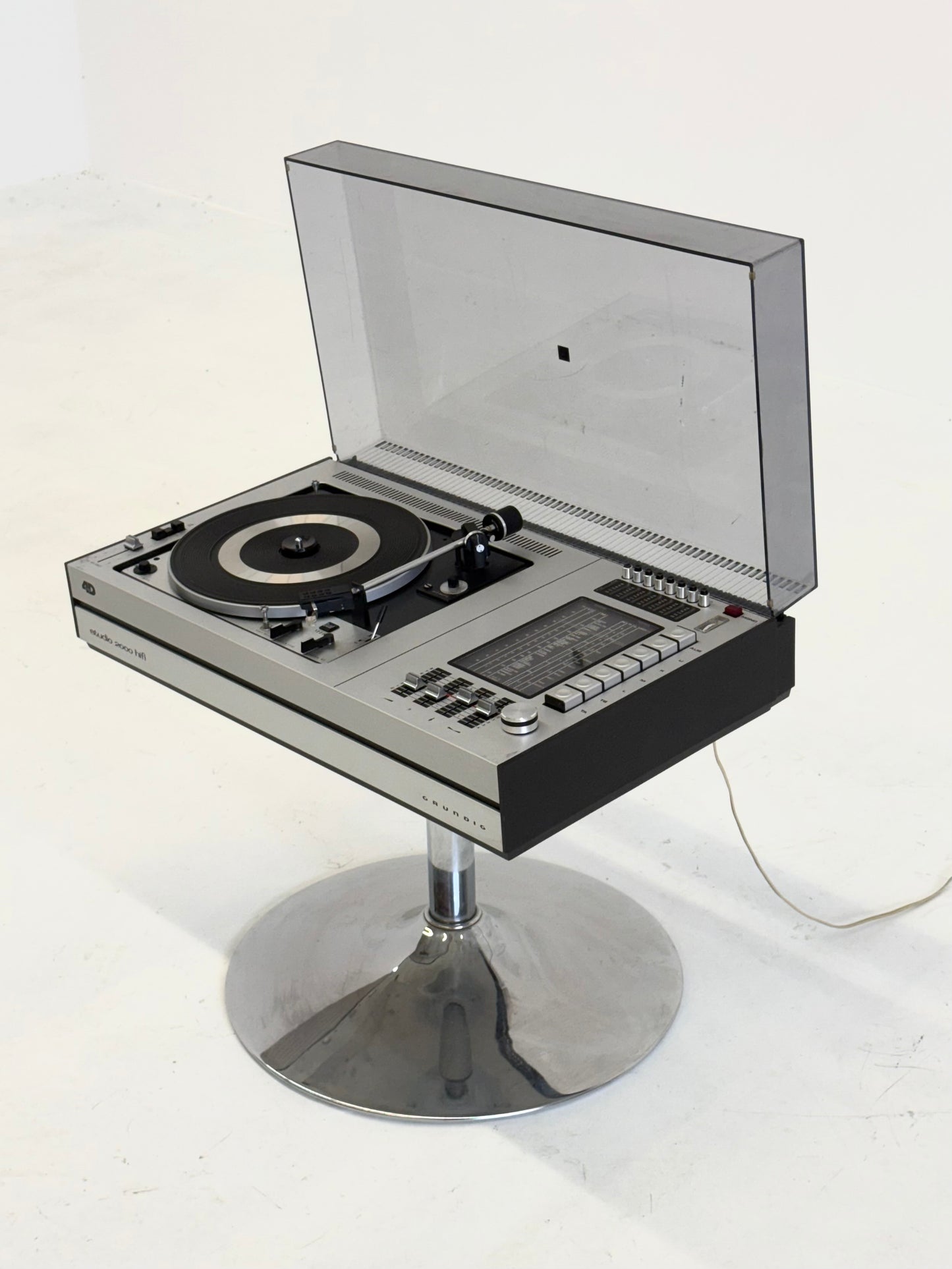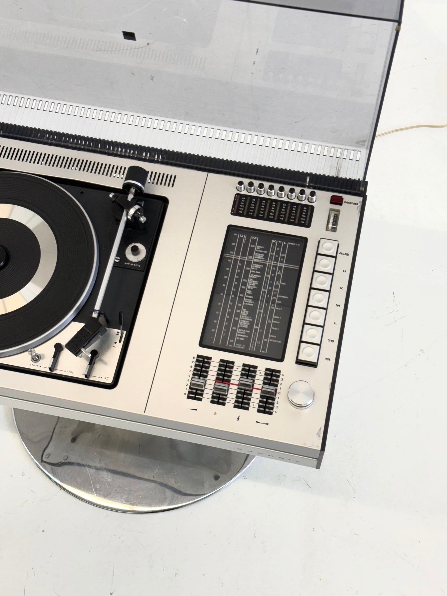 De console staat op een chroomstalen voet, wat zorgt voor een stijlvolle uitstraling. Alle onderdelen zijn nagekeken en werken perfect.