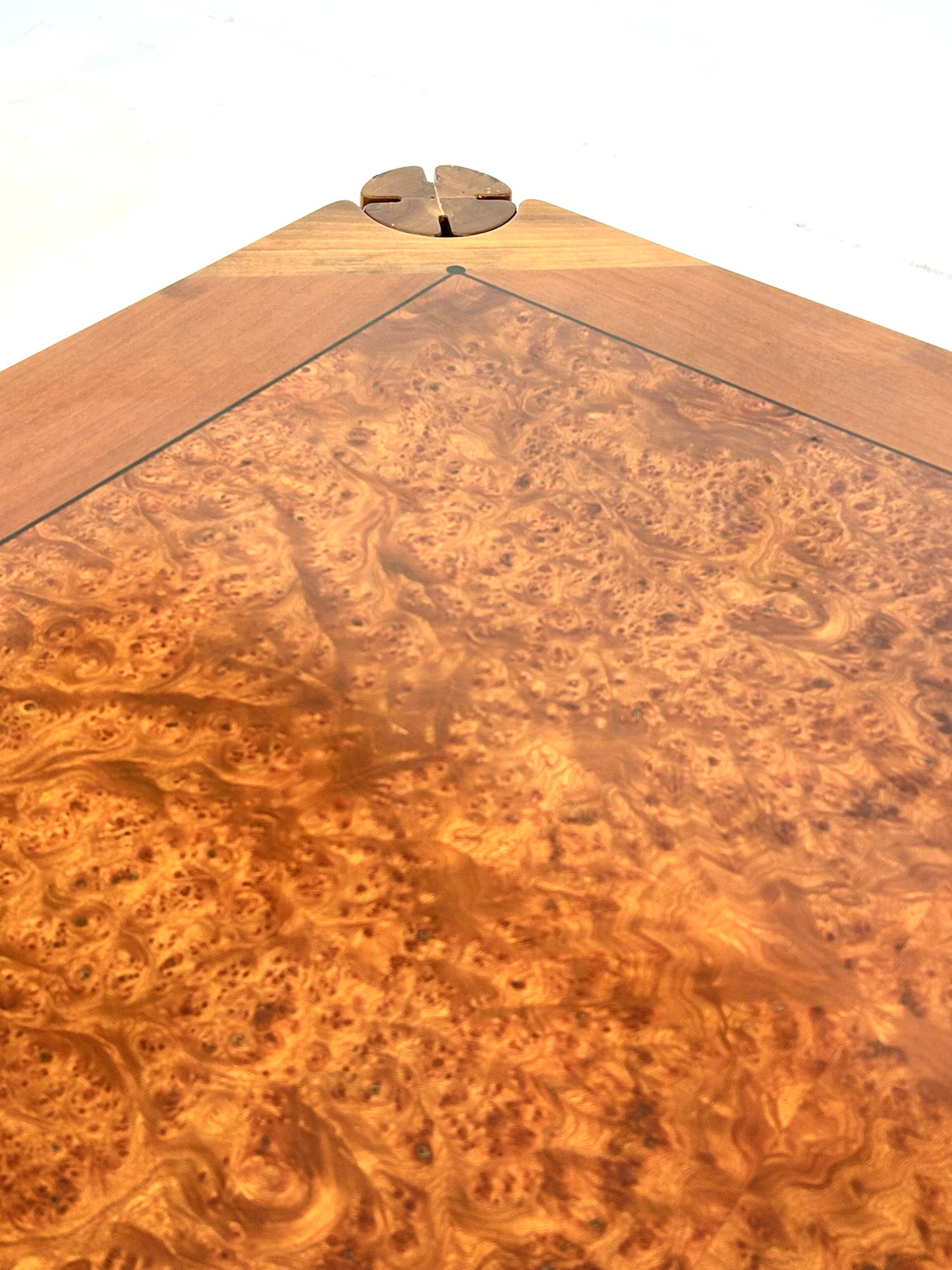 Omschrijving: Italiaans vintage eettafel met wortelhout van Borghi