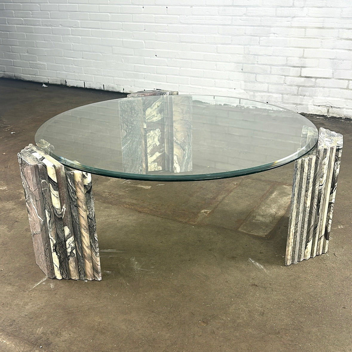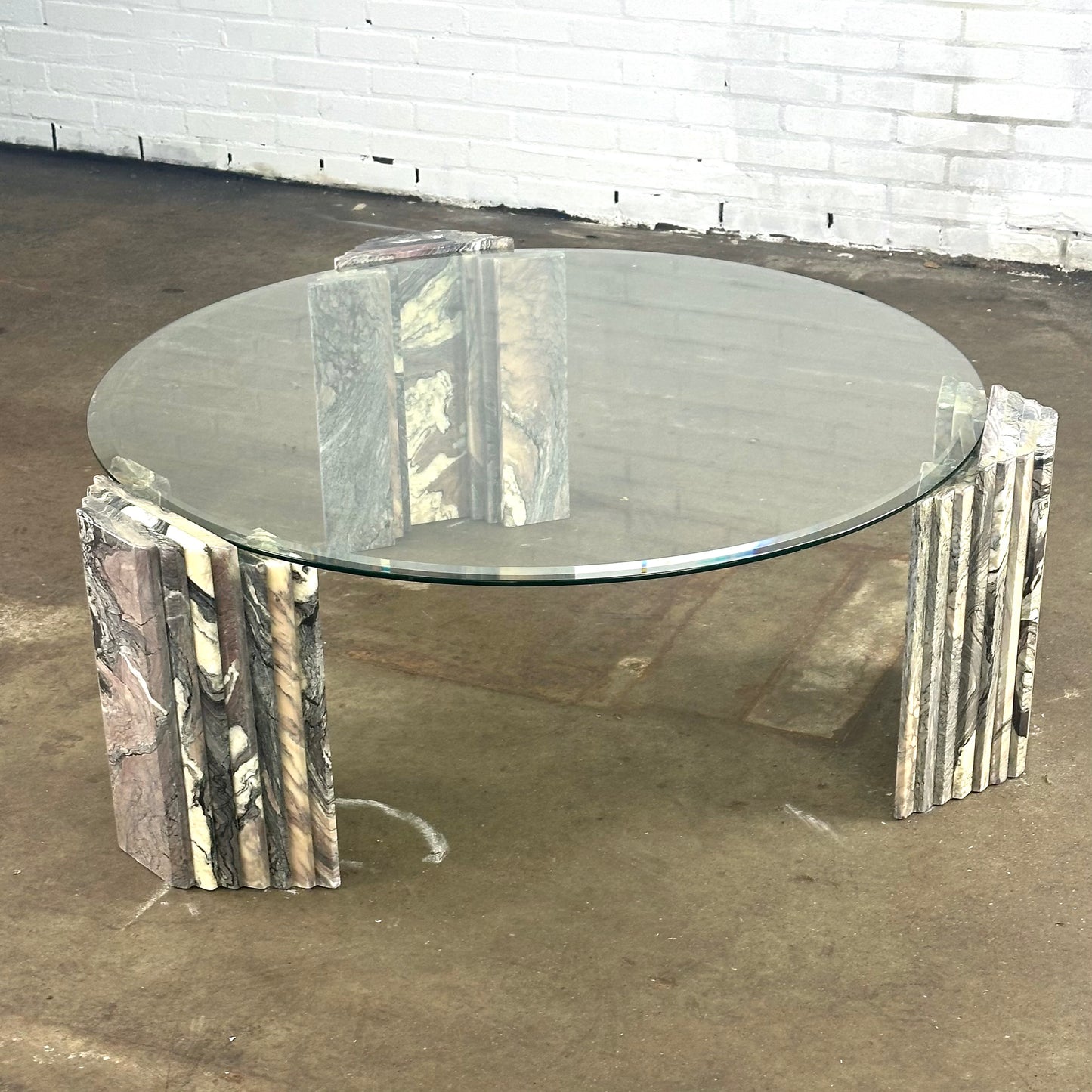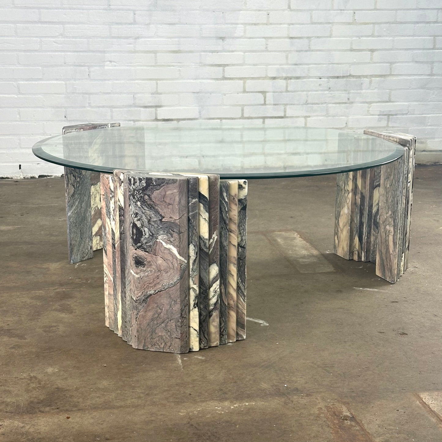 Italiaanse vintage salontafel van marmer en glas