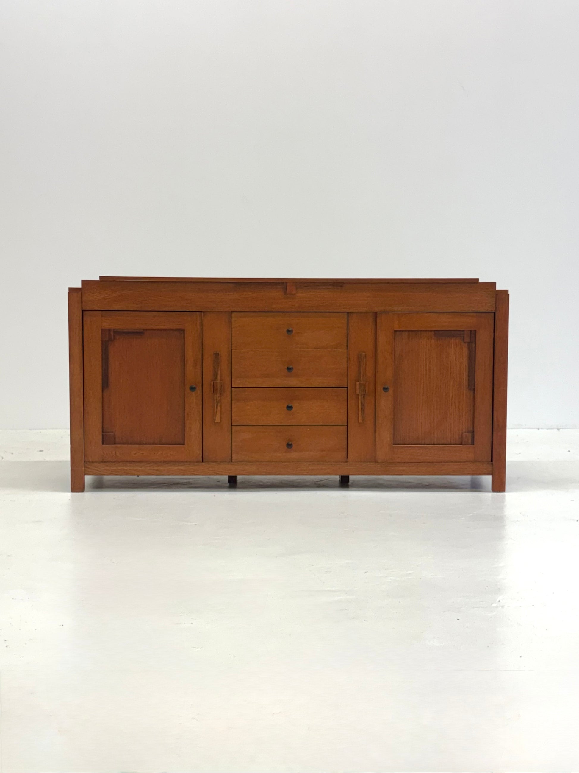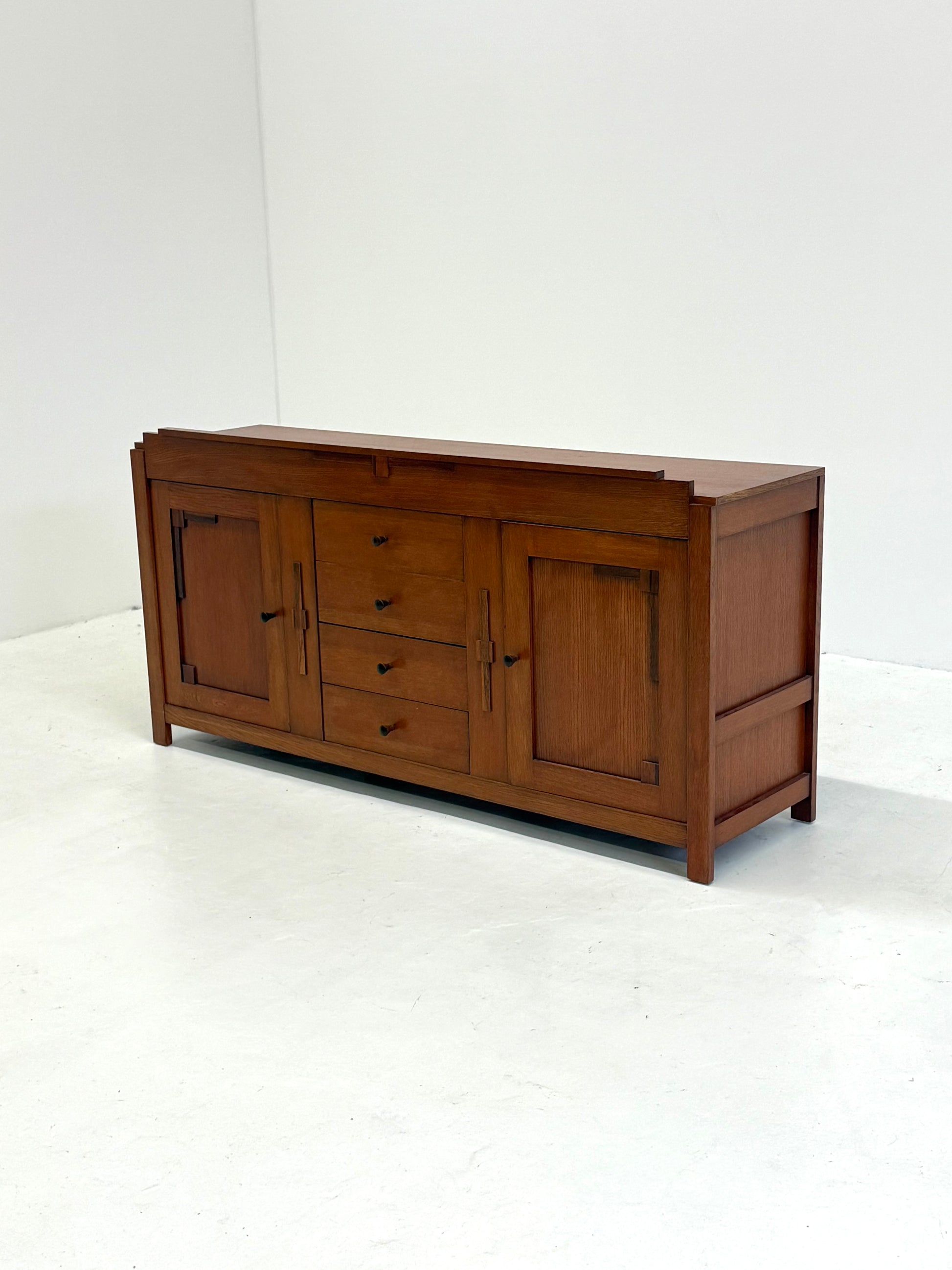 Dit prachtige dressoir is vervaardigd uit kersenhout en straalt de karakteristieke vormen van de Art Deco en Amsterdamse School uit. Het meubel biedt veel opbergruimte en is tegelijkertijd een echte blikvanger in elk interieur. Met zijn elegante lijnen en hoogwaardige vakmanschap voegt dit dressoir zowel functionaliteit als stijl toe aan uw woonruimte.