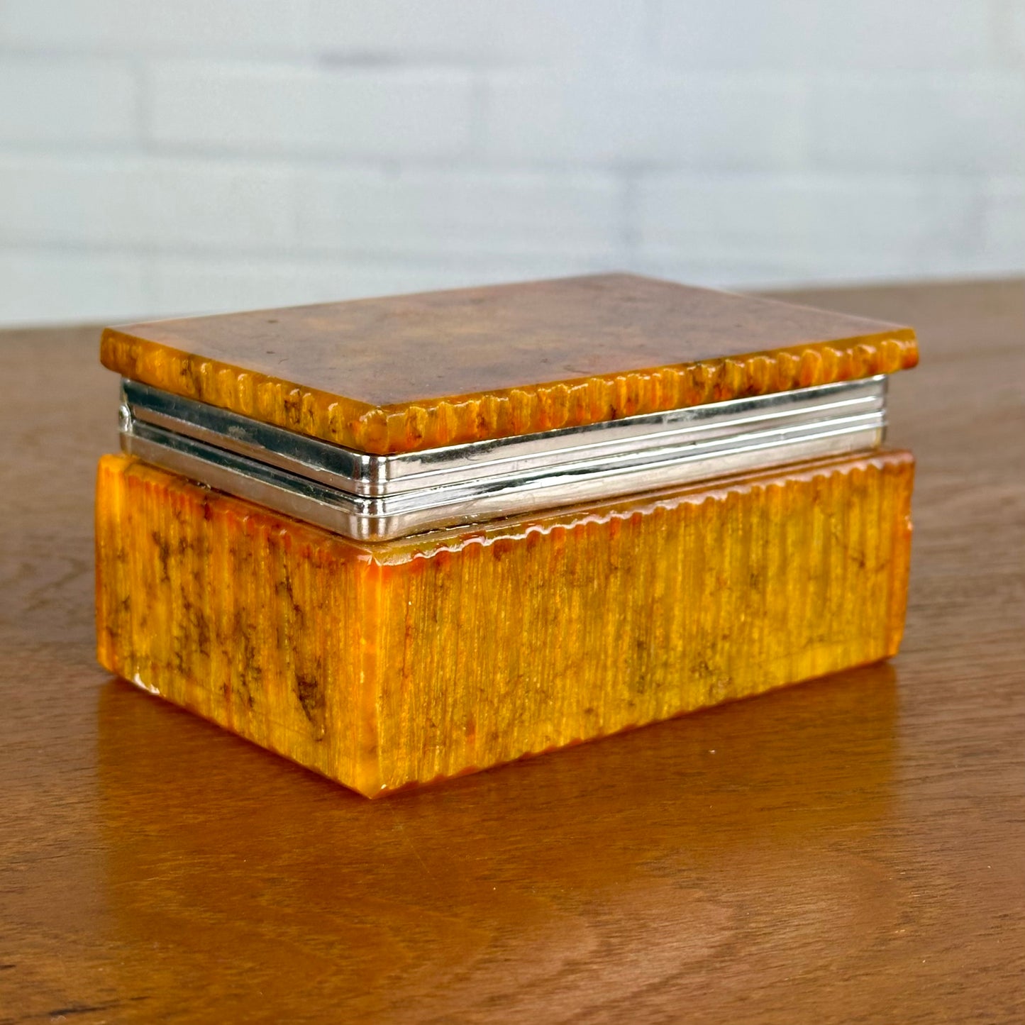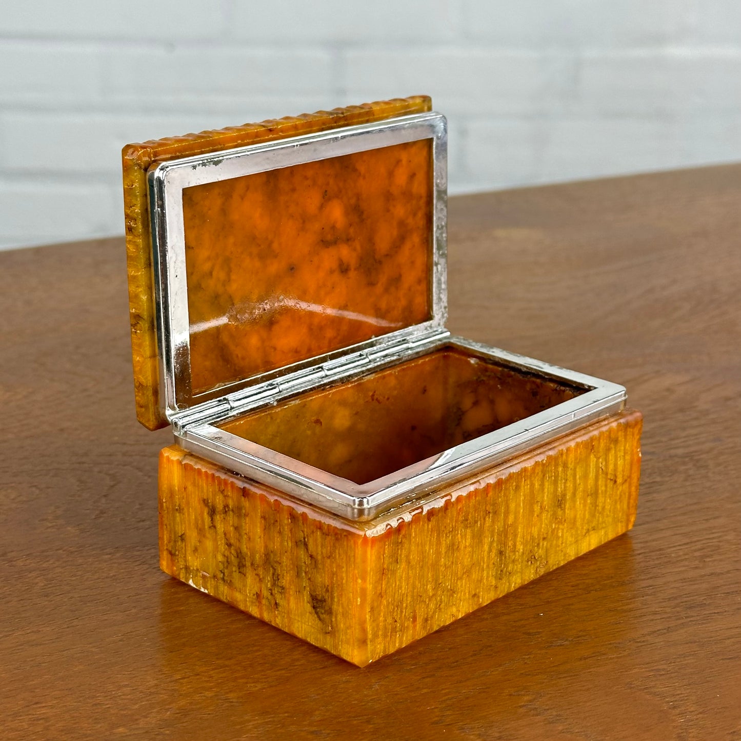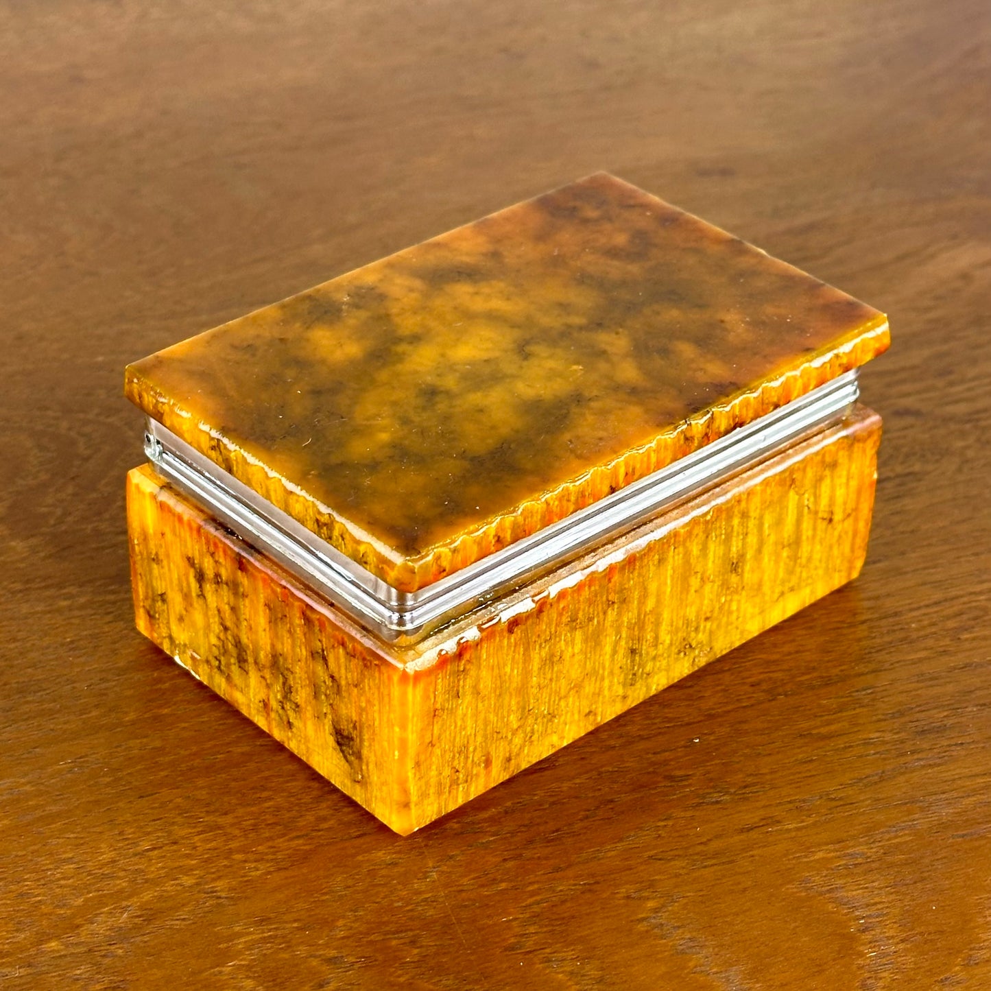 Omschrijving: Italiaanse massieve handgesneden alabaster opberg doosje