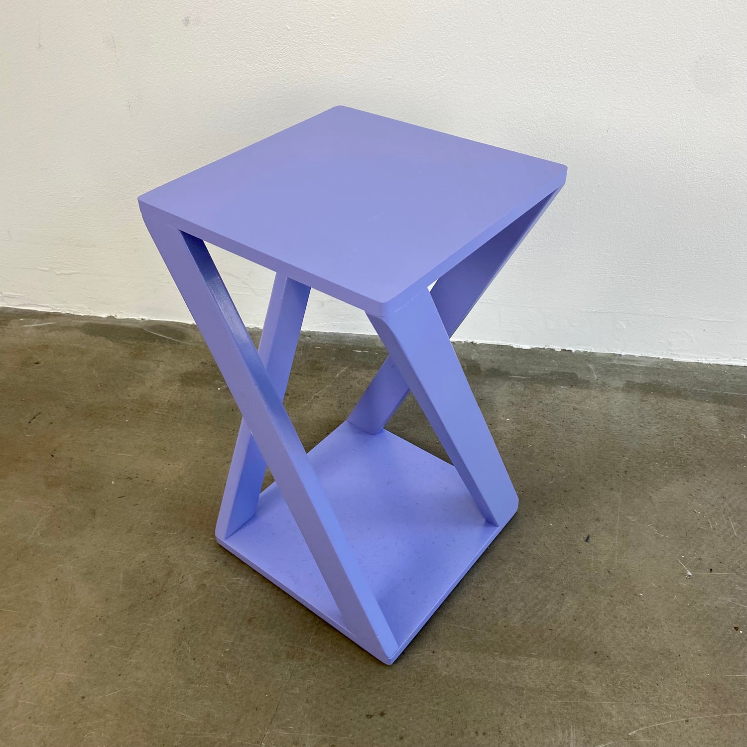 Omschrijving: Lavendel kleurig display / bijzettafel van hout