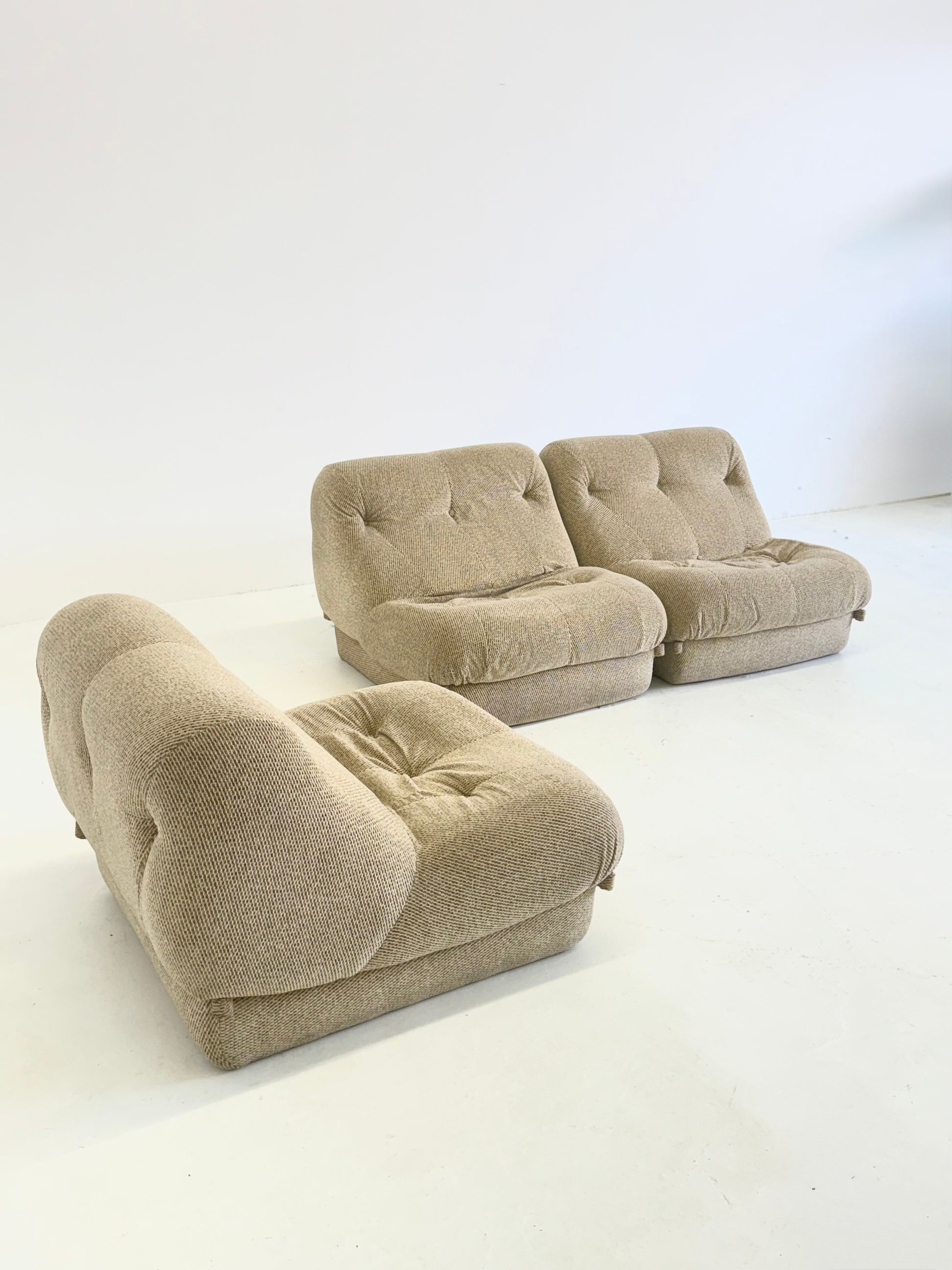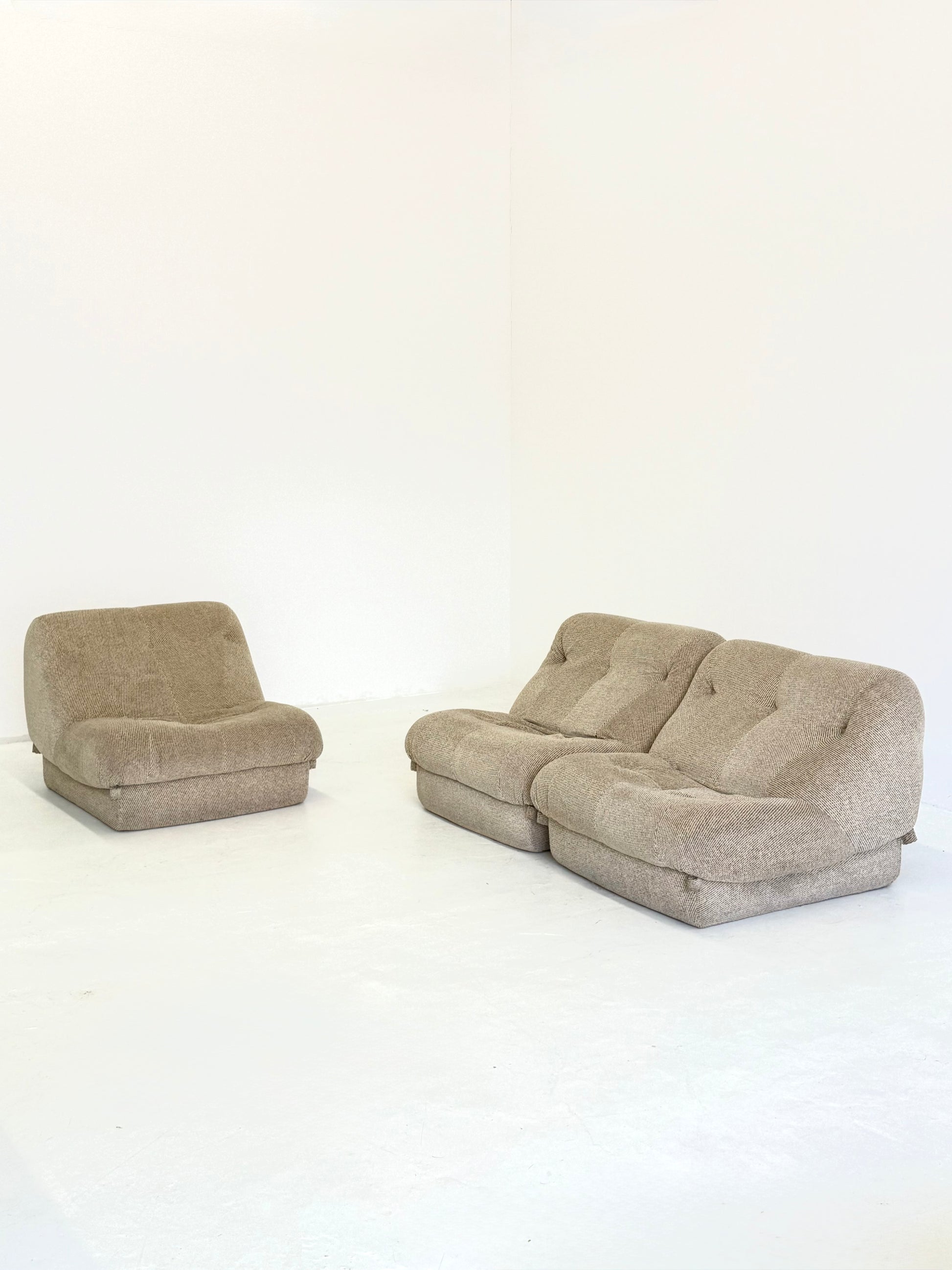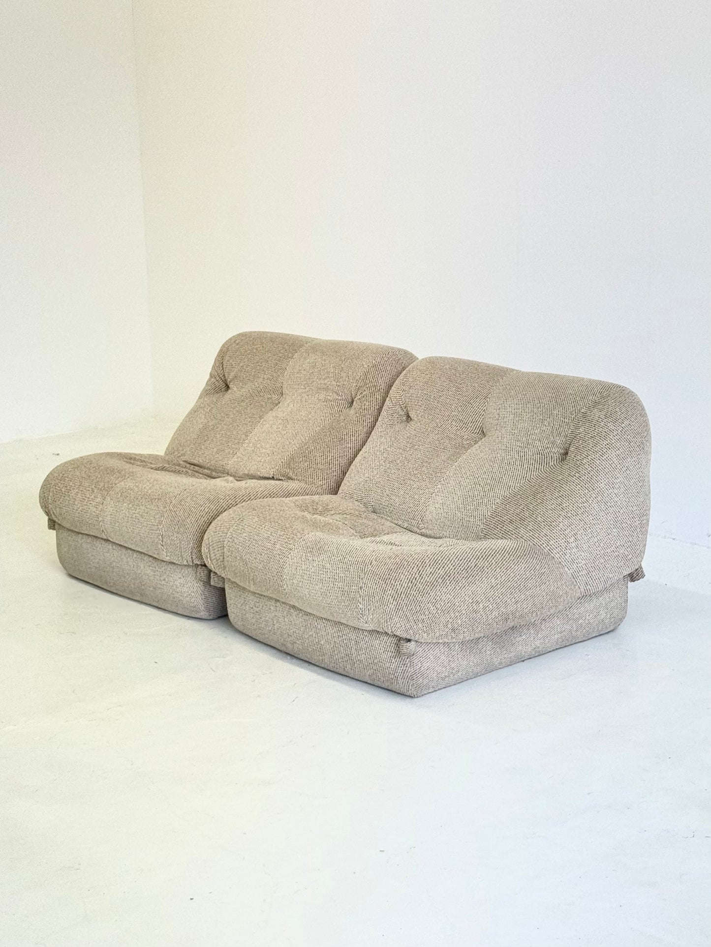 De Nuvolone lounge bank, ontworpen door Rino Maturi voor Mimo Padova in de jaren 70, is een Italiaans designicoon. De modulaire opstelling en zachte, organische vormen geven deze bank een speelse en uitnodigende uitstraling, geïnspireerd op de luchtige vormen van wolken.
