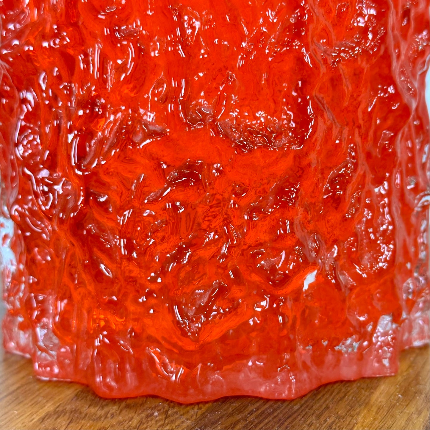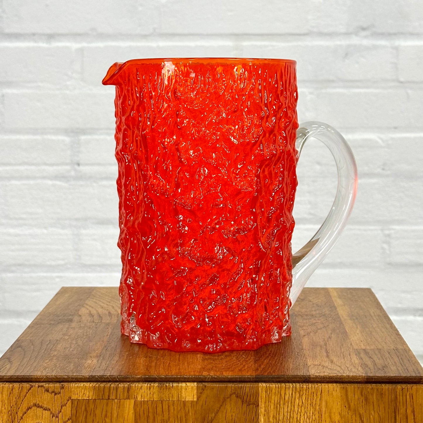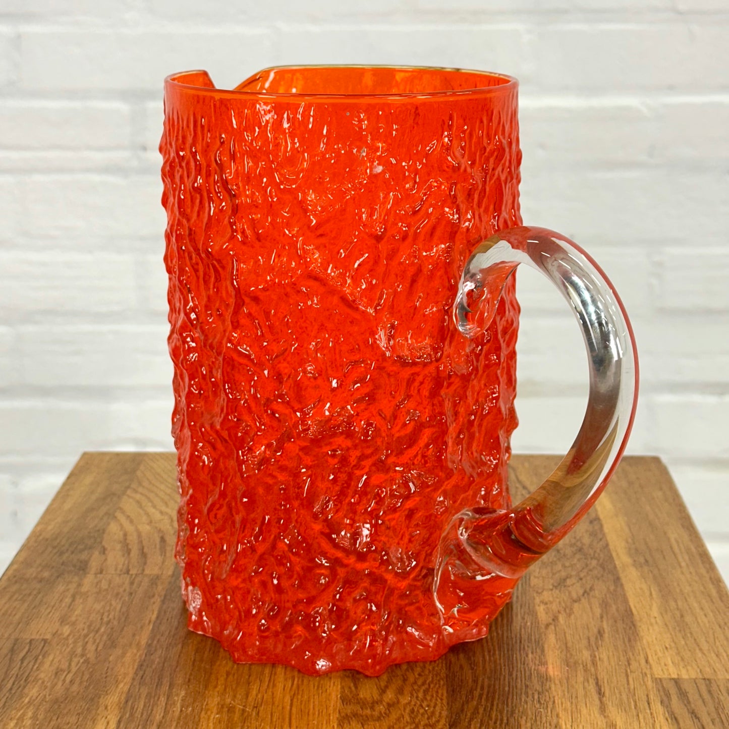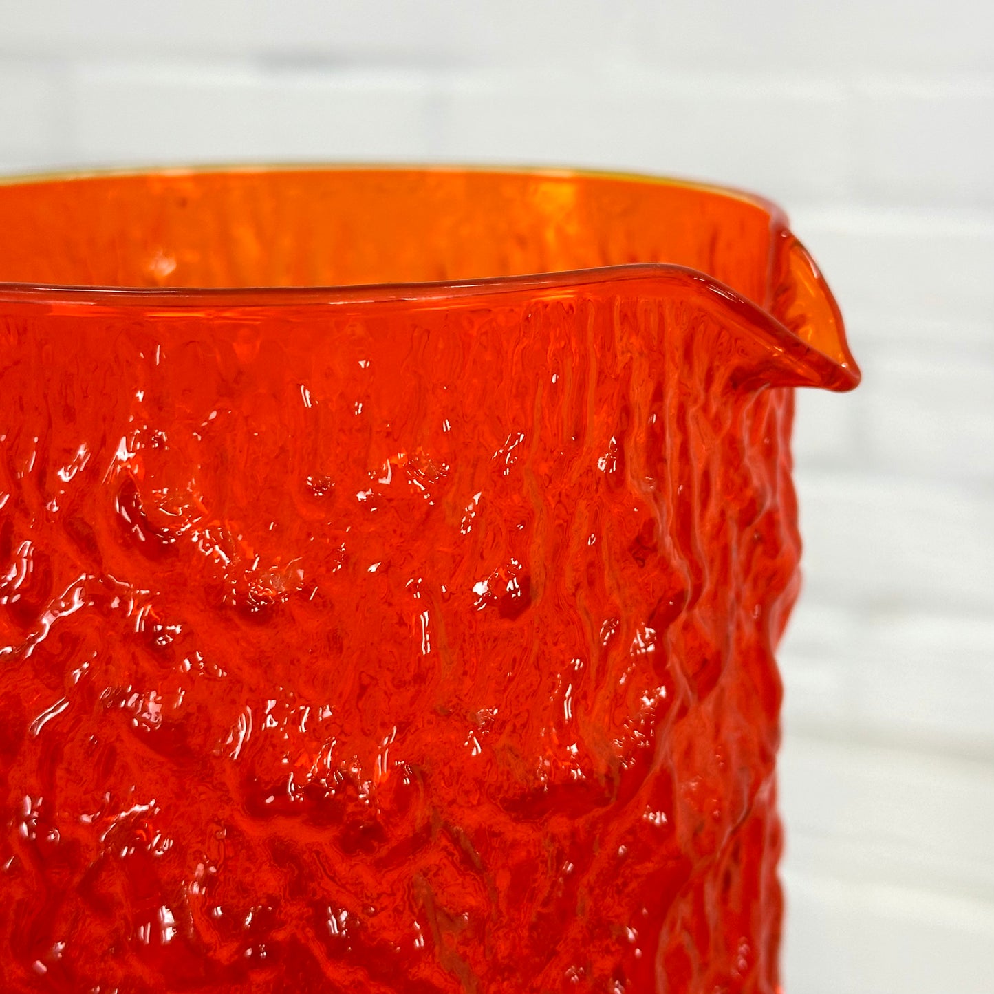 Omschrijving: Oranje glazen karaf van Geoffrey Baxter voor Whitefriars