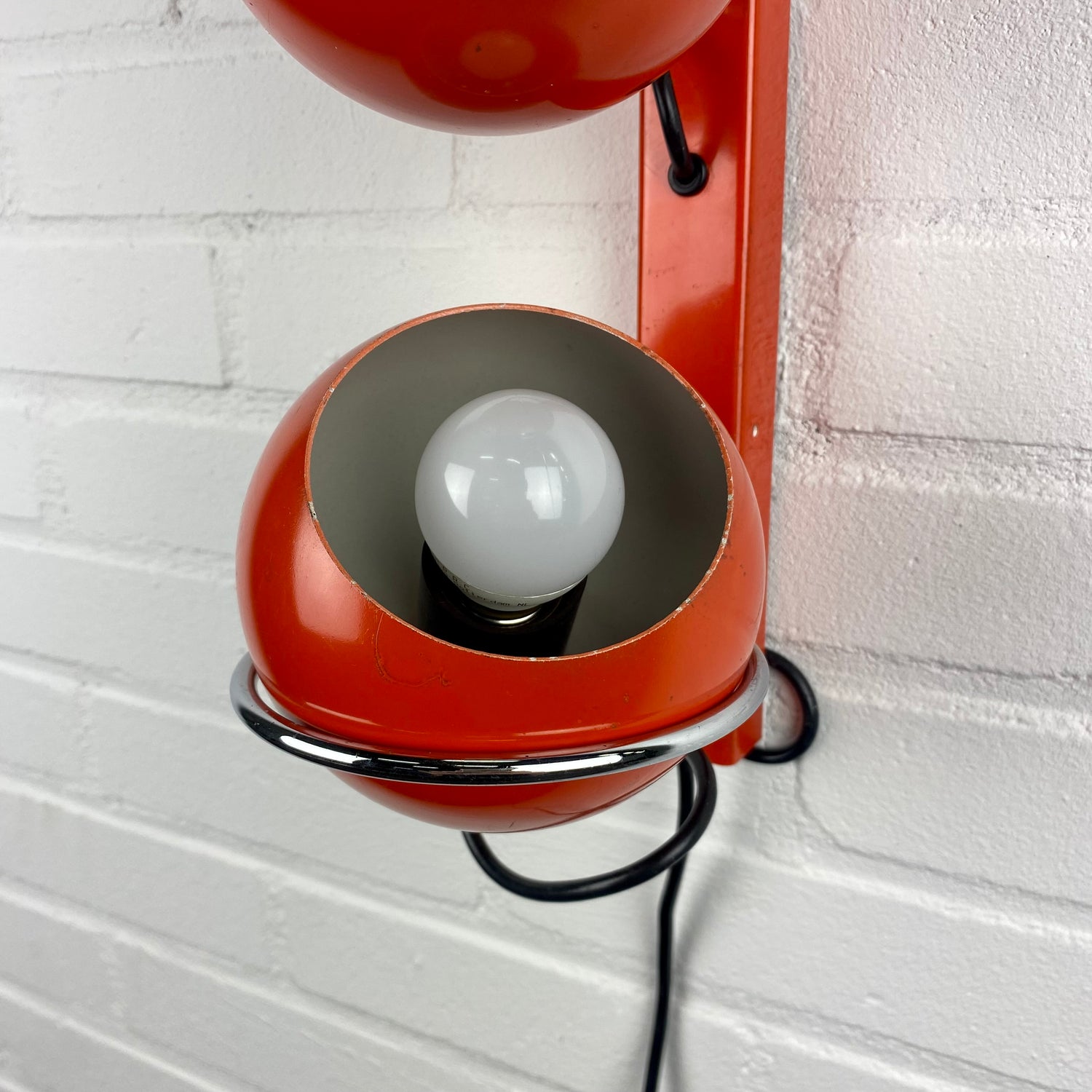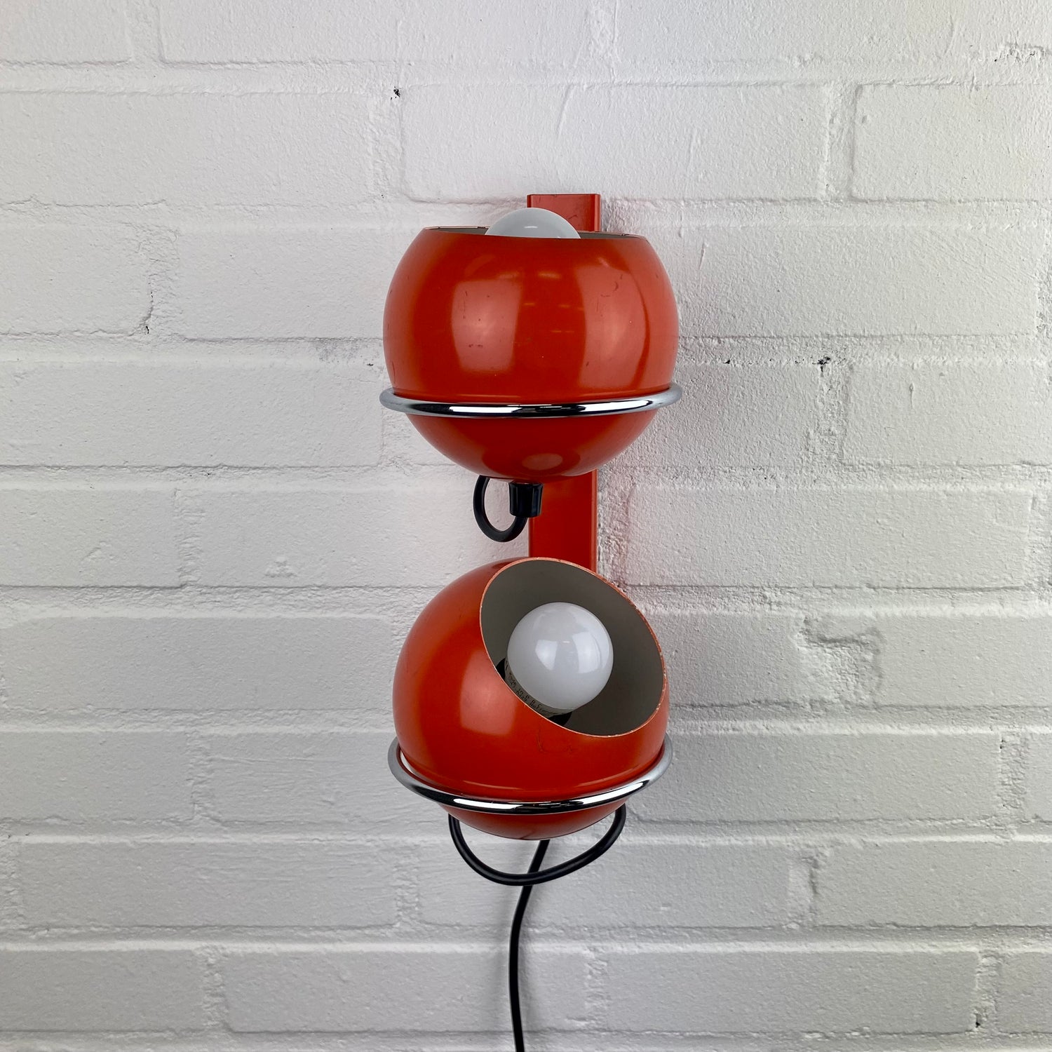 Omschrijving: Oranje vintage Gepo Wandlamp met twee bollen.