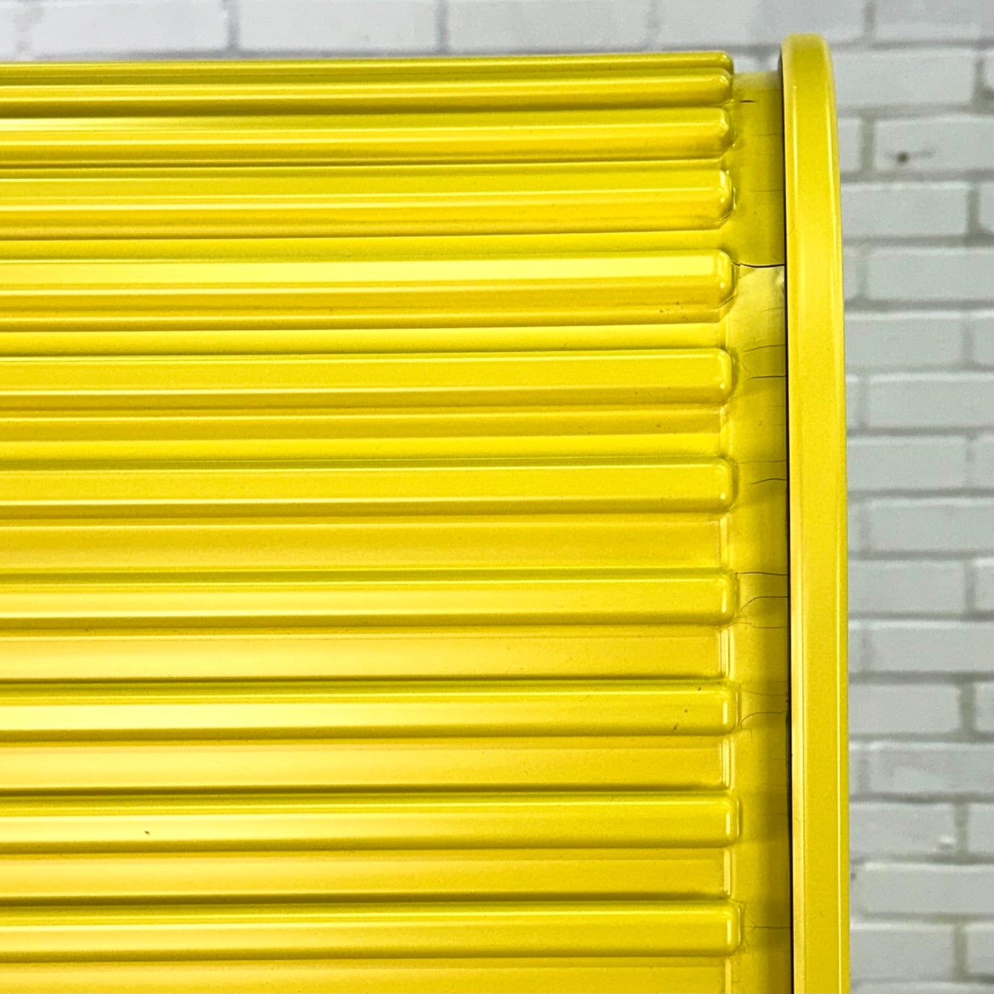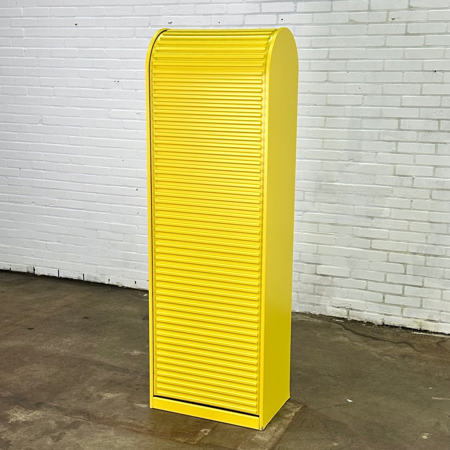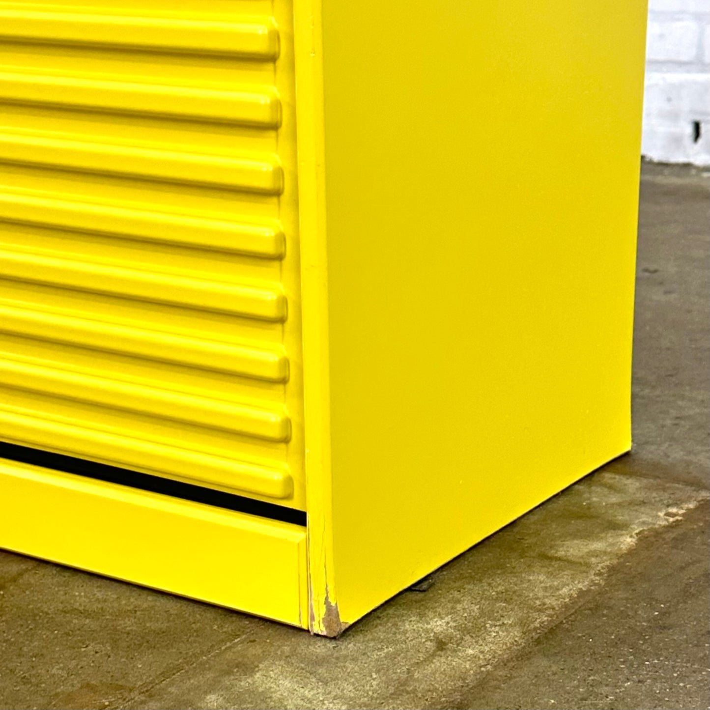 De kast is uitgevoerd in een opvallende gele kleur, wat een speels en toch verfijnd accent geeft aan ieder interieur. Het praktische ontwerp biedt veelzijdige opbergruimte, ideaal voor woon- of werkruimtes.