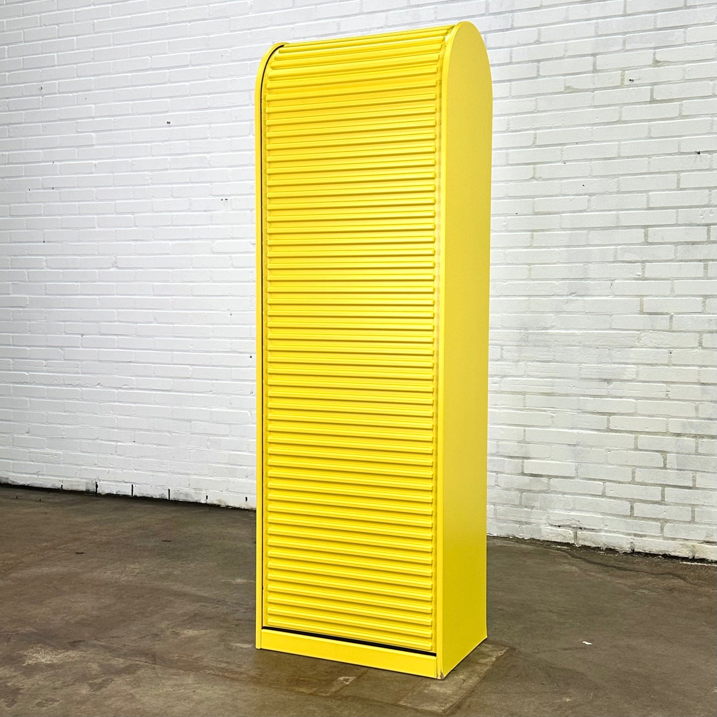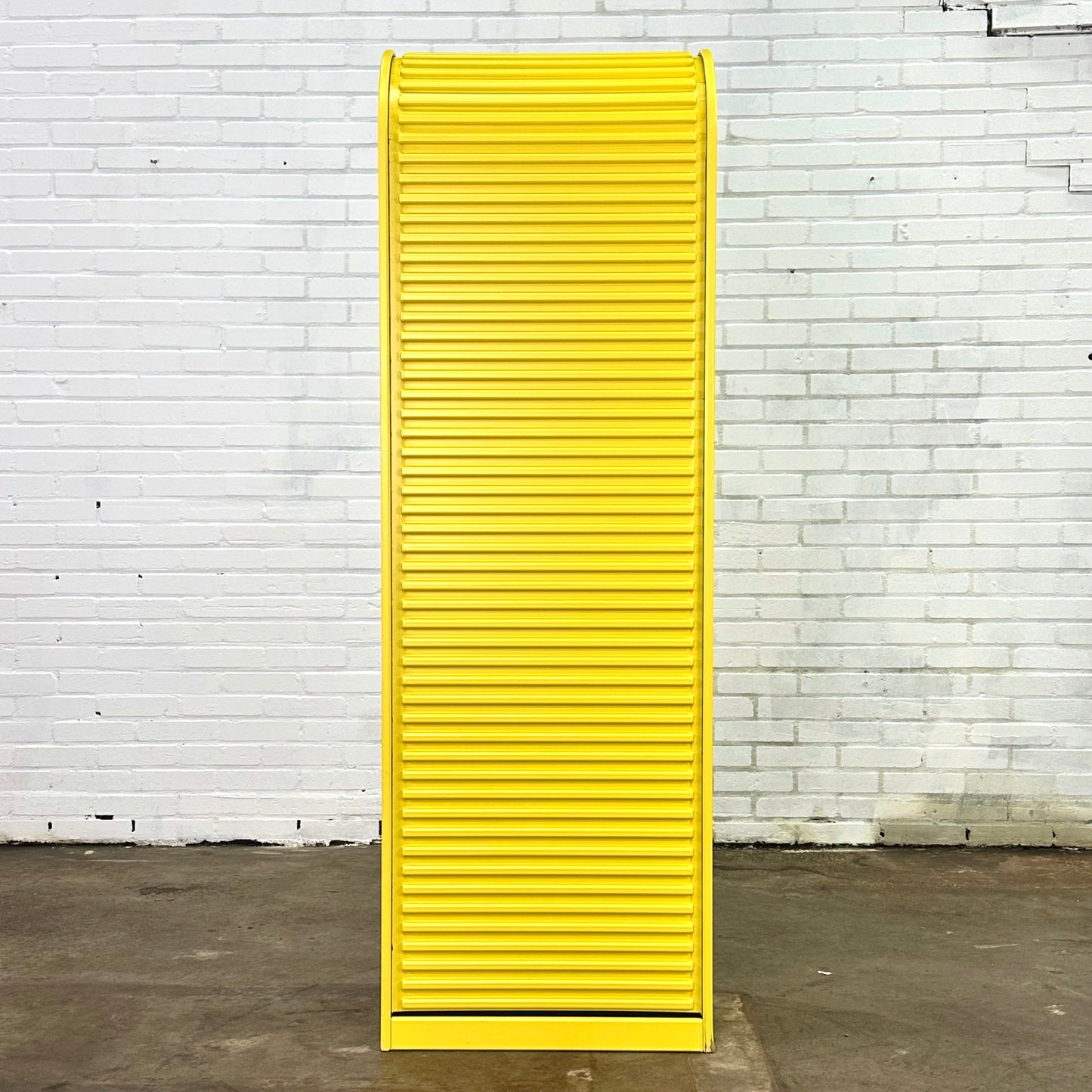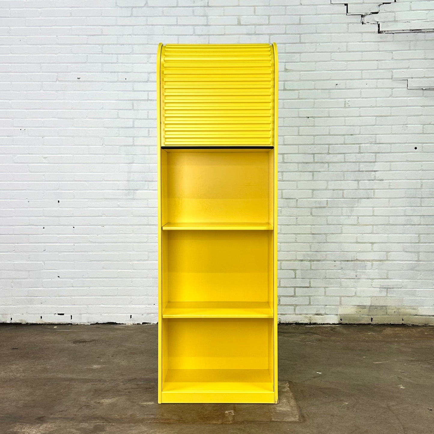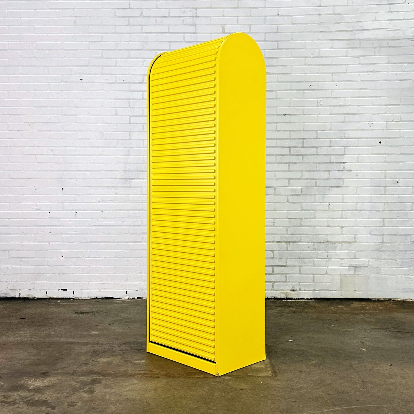 De kast is uitgevoerd in een opvallende gele kleur, wat een speels en toch verfijnd accent geeft aan ieder interieur. Het praktische ontwerp biedt veelzijdige opbergruimte, ideaal voor woon- of werkruimtes.