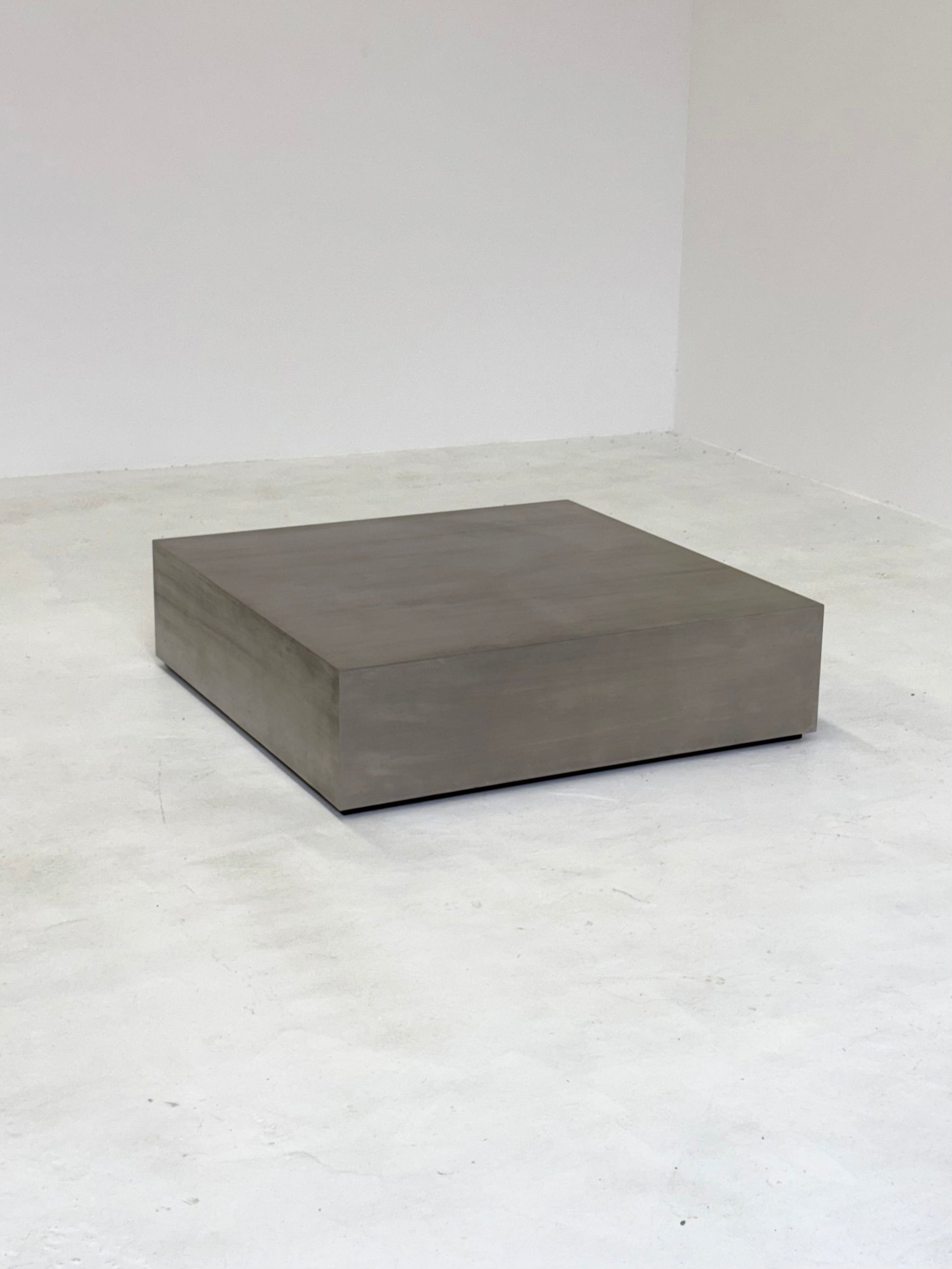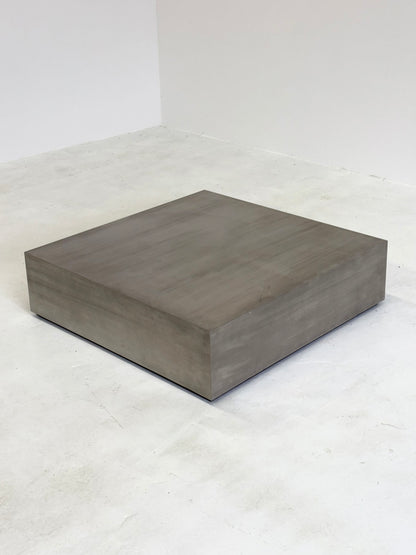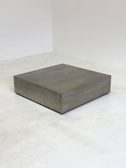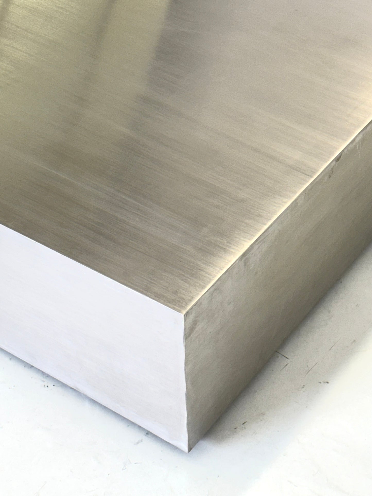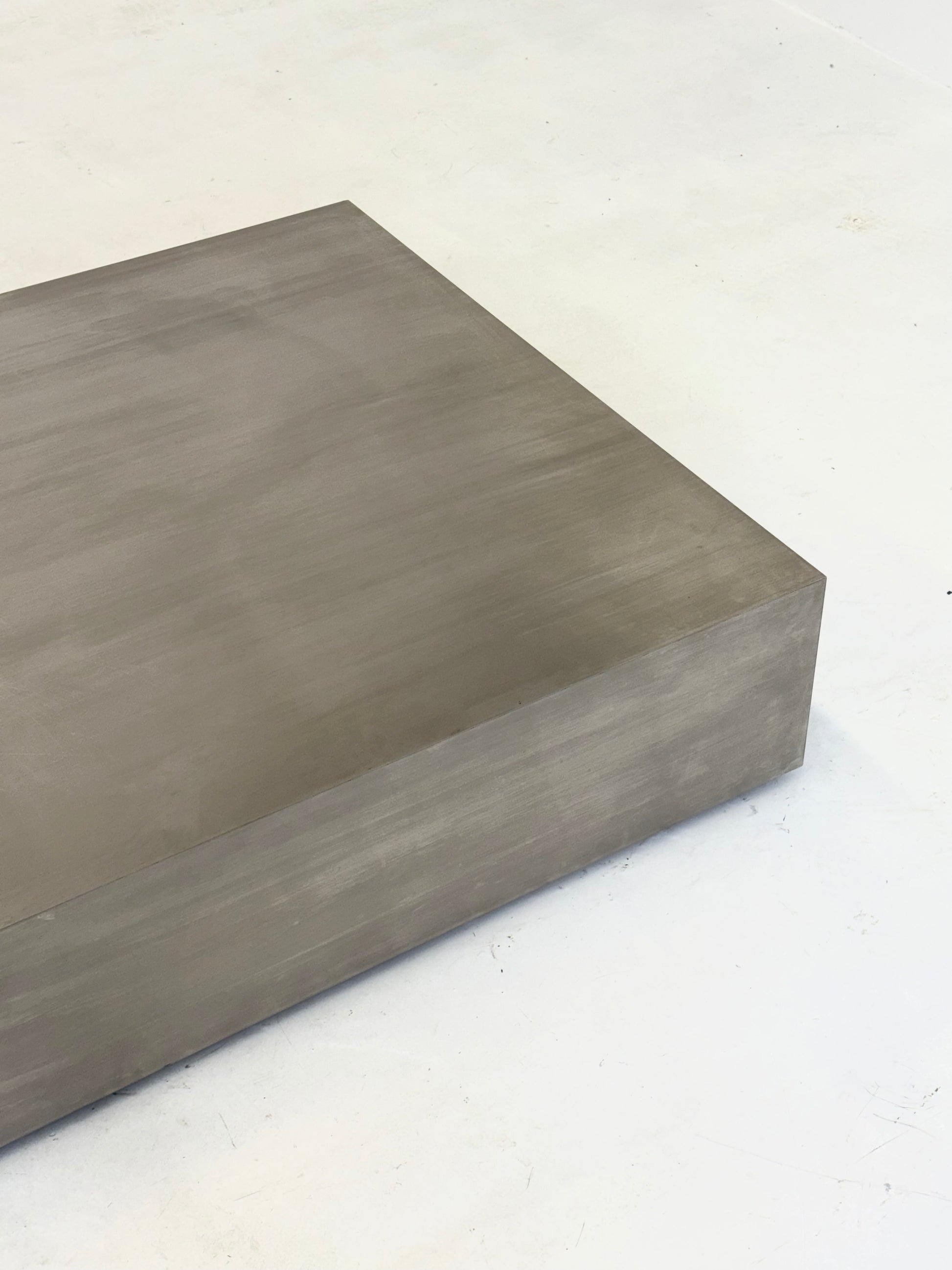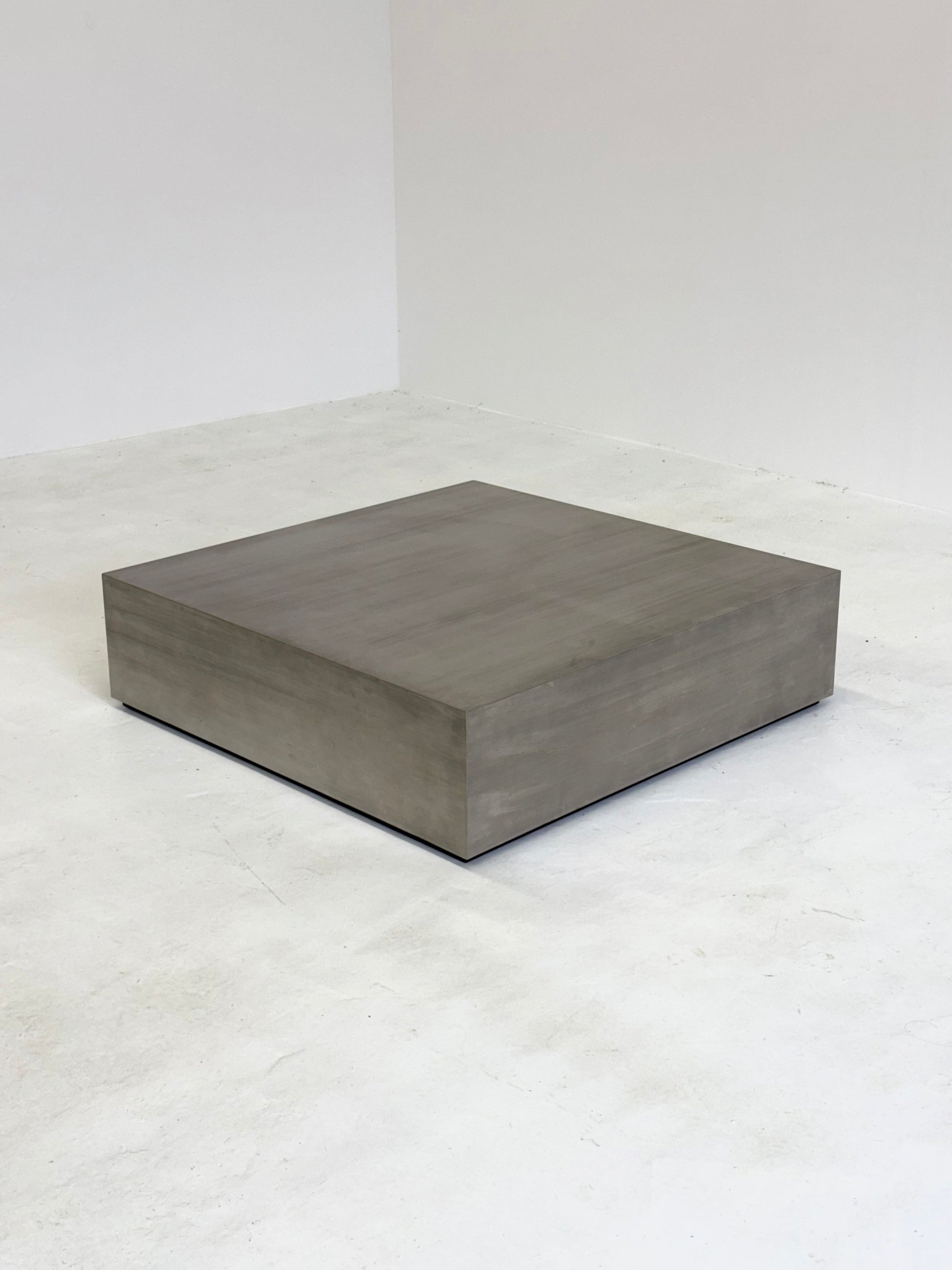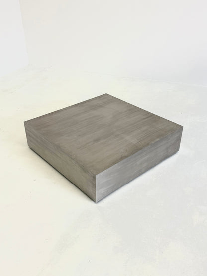 Deze vierkante salontafel is een strakke en moderne blok tafel gemaakt van roestvrij staal (RVS). Het minimalistische ontwerp benadrukt de robuuste en industriële uitstraling van het materiaal.